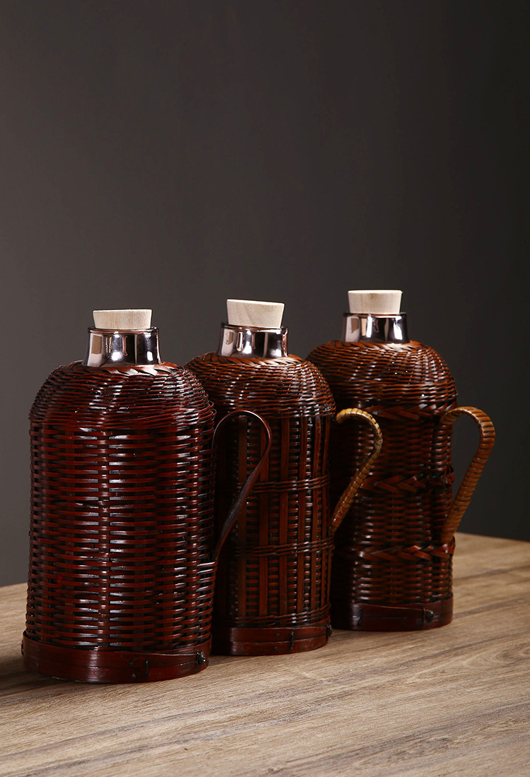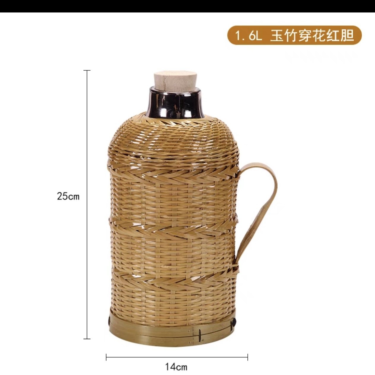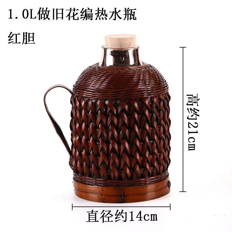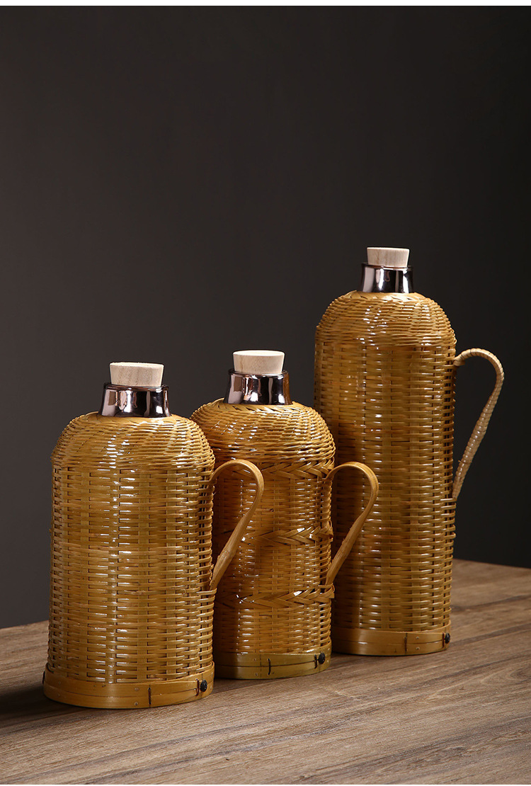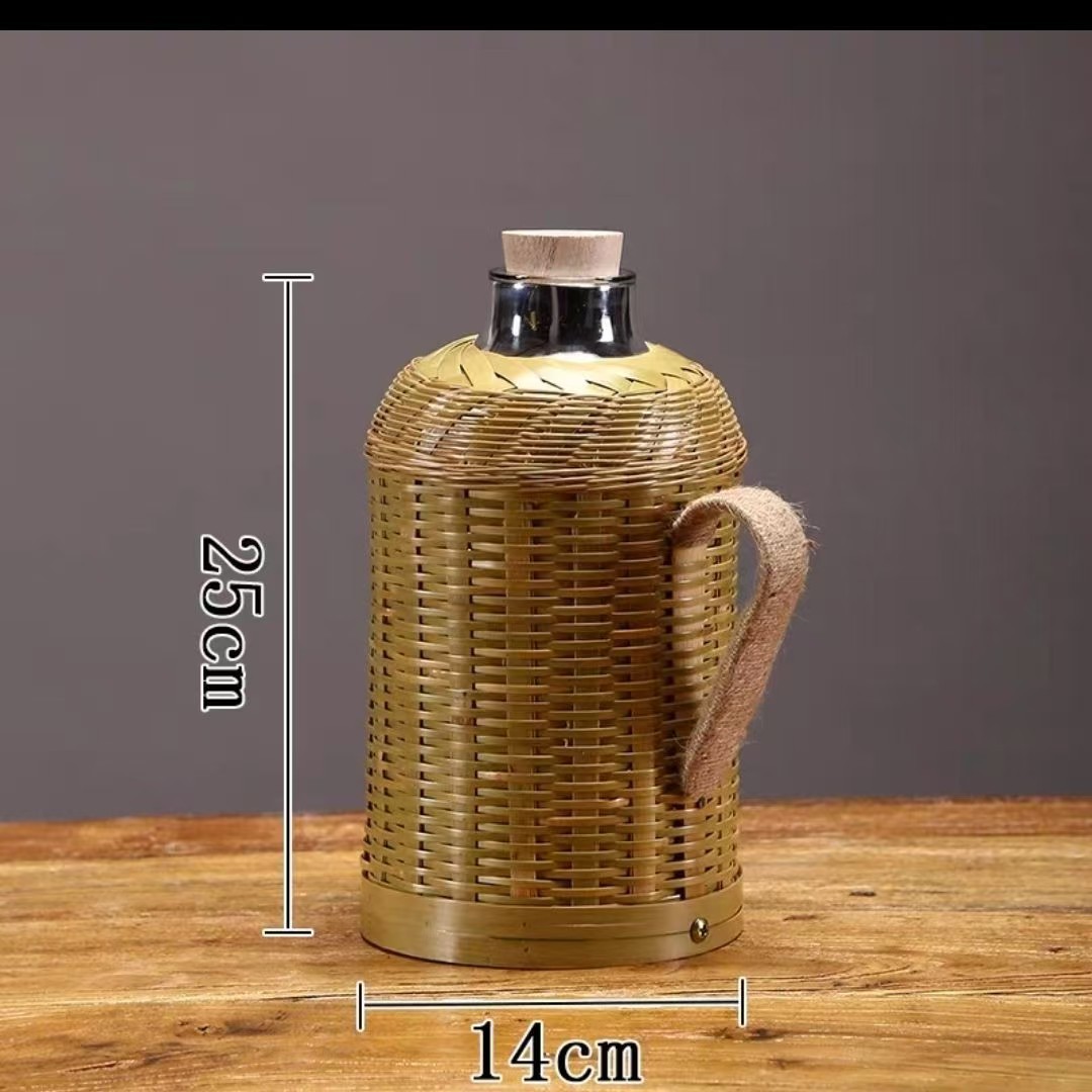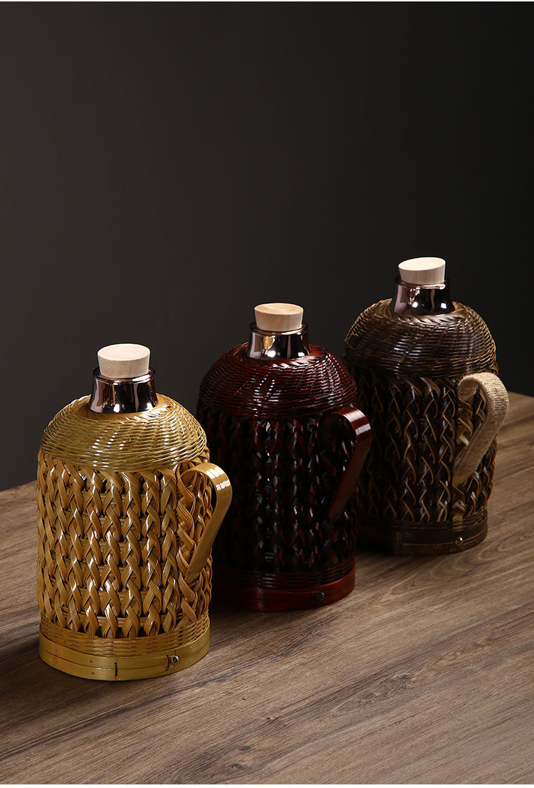 수제 대나무 냄비 빈티지 보온병 가정용 대나무 냄비 유리 내부 냄비 보일러 쉘