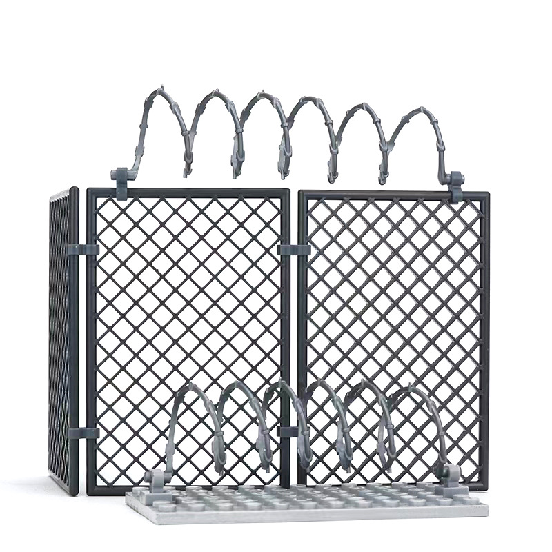 국경 간 울타리 남자 군사 DIY 철망 울타리 장면 장식 호환 소형 입자 MOC 빌딩 블록 차고 장난감스토어 가기