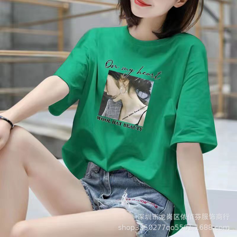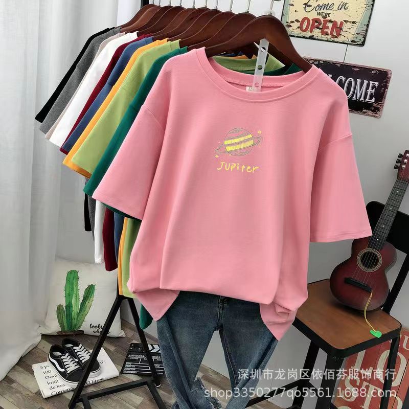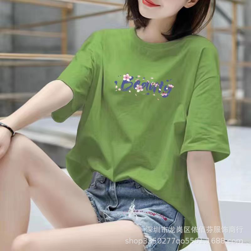 반팔 티셔츠 여성용 스탤인원 공급 새로운 패션 모든 경기 여성용 면 티셔츠 학생용 라지 에디션 루즈한 여성용 티셔츠스토어 가기