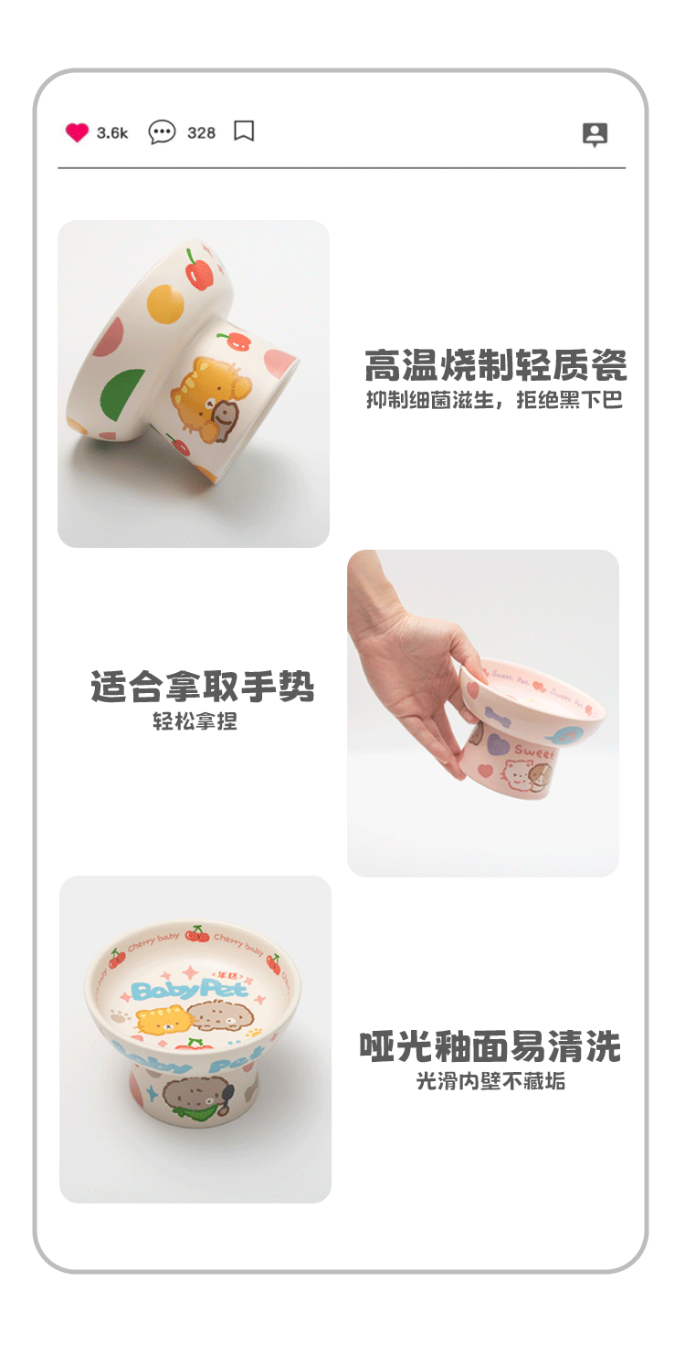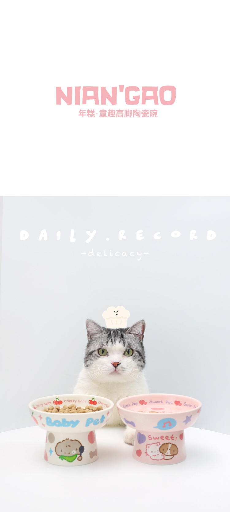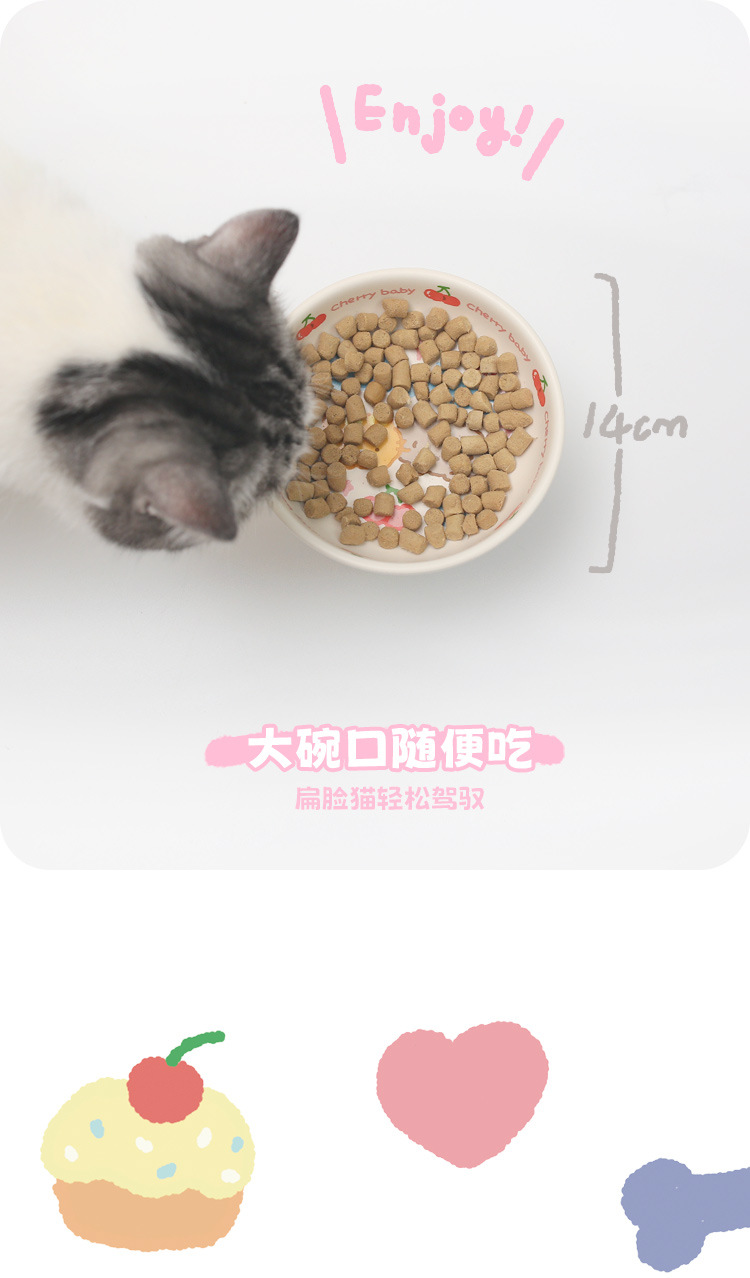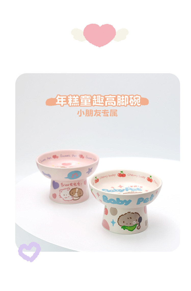 떡 NianGao 어린이 재미 세라믹 귀여운 고양이 그릇 더블 그릇 강아지 그릇 고양이 그릇 보호 척추 애완 동물스토어 가기