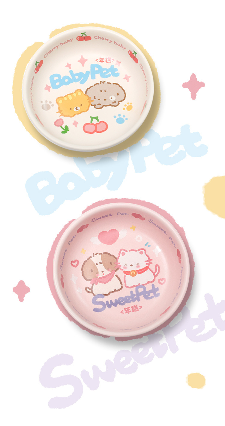 떡 NianGao 어린이 재미 세라믹 귀여운 고양이 그릇 더블 그릇 강아지 그릇 고양이 그릇 보호 척추 애완 동물
