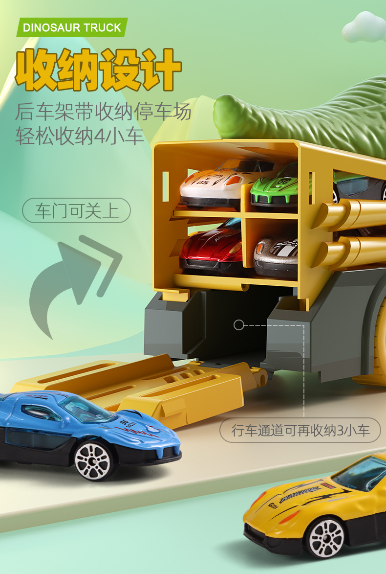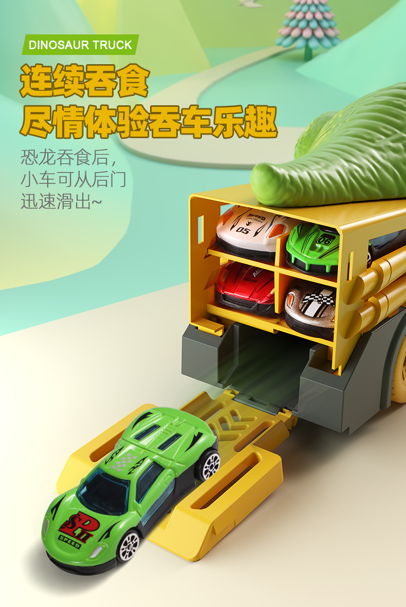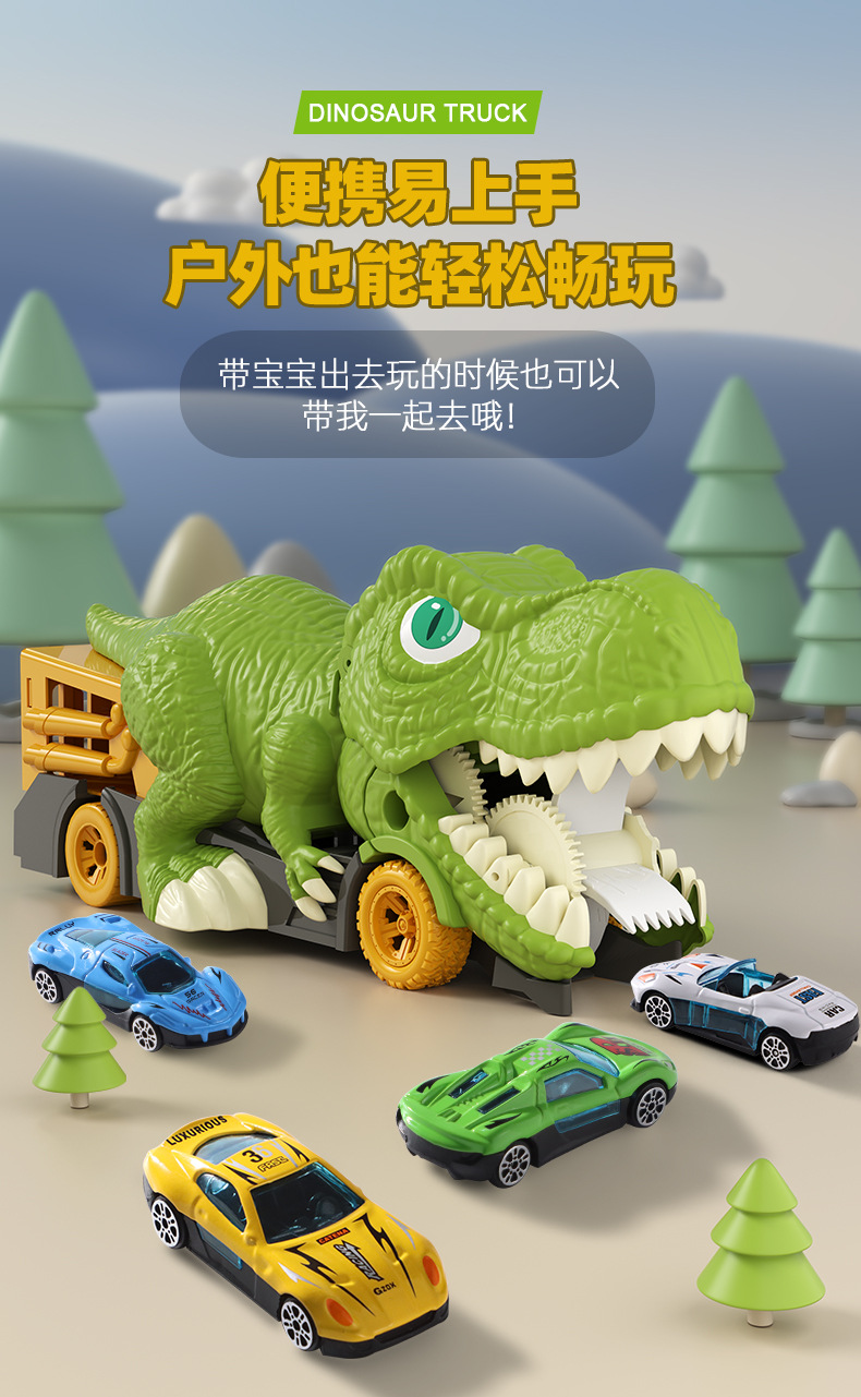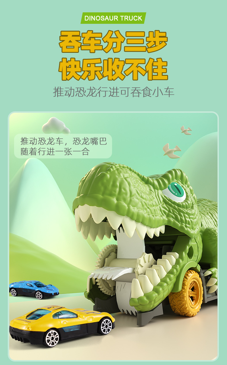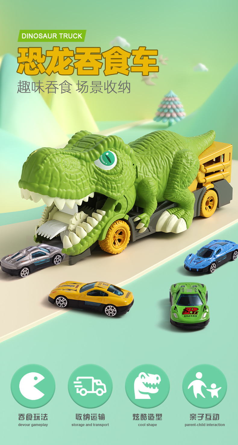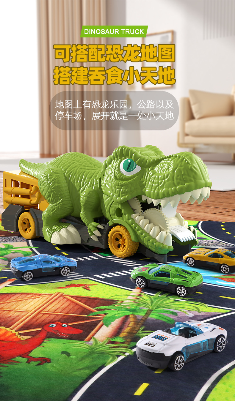 국경을 넘는 어린이용 대형 공룡이 자동차를 삼키는 후렉션 합금 자동차 지도 보관 자동차 남자아이 장난감 공룡 장난감 자동차스토어 가기