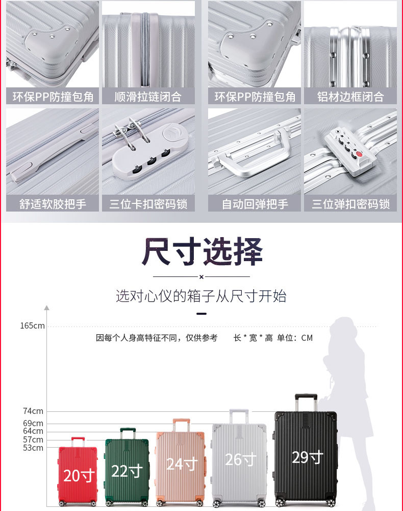 여행가방 대용량 20인치 트롤리 캐리어, 저소음 회전 바퀴, 24인치 남녀 학생용, 26inch 비밀번호 가죽 캐리어 가방스토어 가기