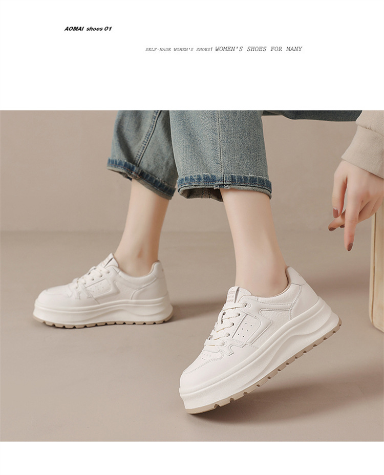 2025 여름 패션 홍콩 스타일 통기성 흰색 여성용 신발, 두꺼운 밑창으로 키가 커지고 날씬해 보이는 여신 필수 캐주얼 가죽 스니커즈