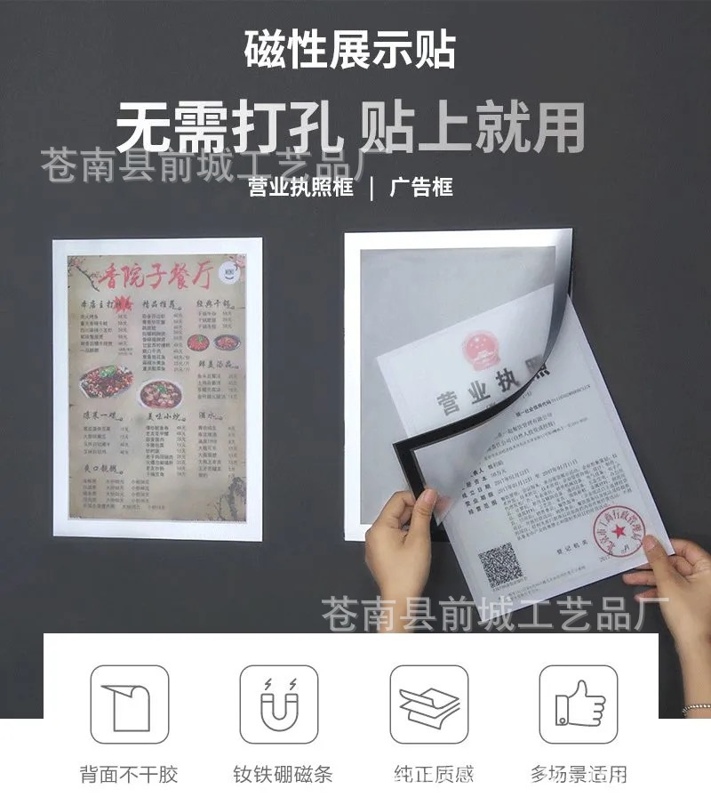 광고 A3A4 비즈니스 라이센스 주택 정보 인증서 포스터 사진 보호 필름 마그네틱 포토 프레임 디스플레이 포스트스토어 가기