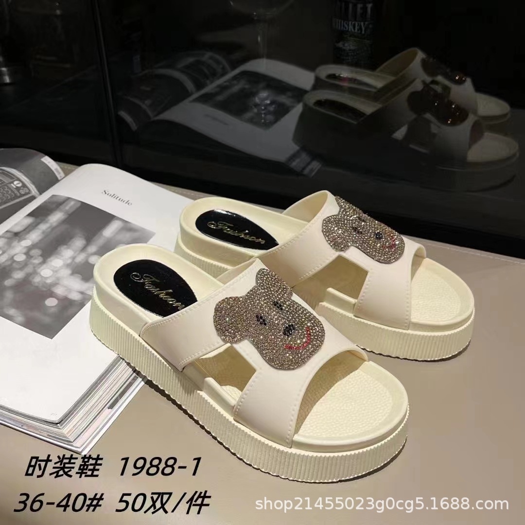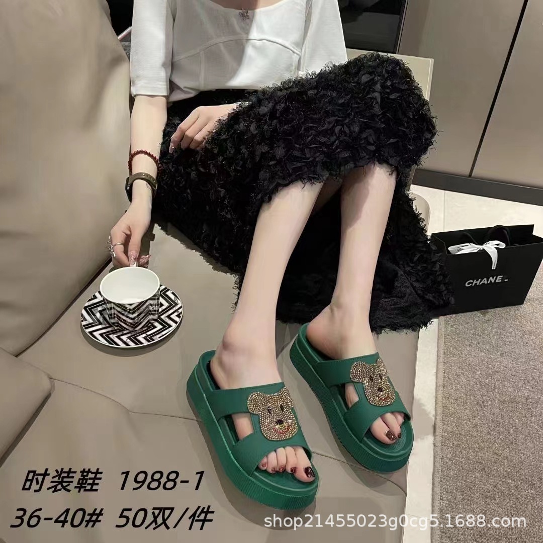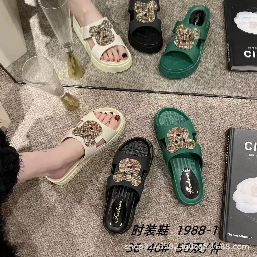 패션 슬리퍼 여성 여름 컬러 다이아몬드 베어 트렌디 인기 두꺼운 바닥 증가 샌들 뉴 홈 야외 비치 슬리퍼
