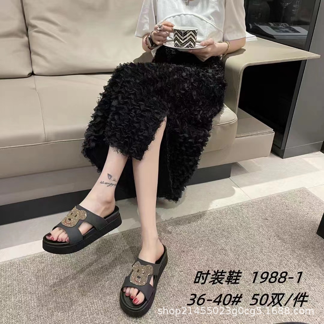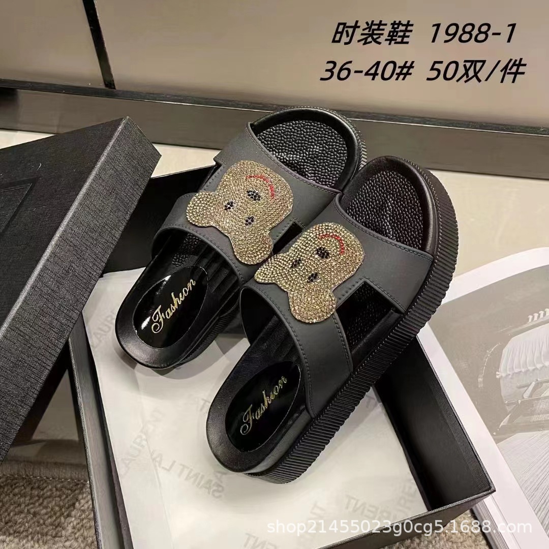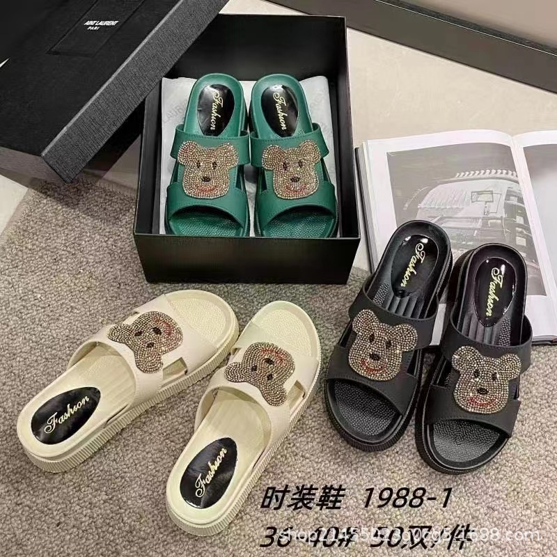 패션 슬리퍼 여성 여름 컬러 다이아몬드 베어 트렌디 인기 두꺼운 바닥 증가 샌들 뉴 홈 야외 비치 슬리퍼
