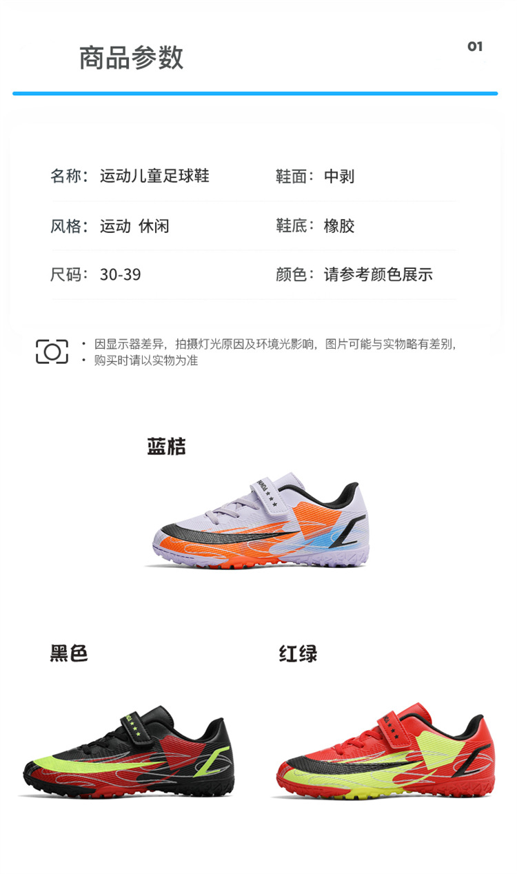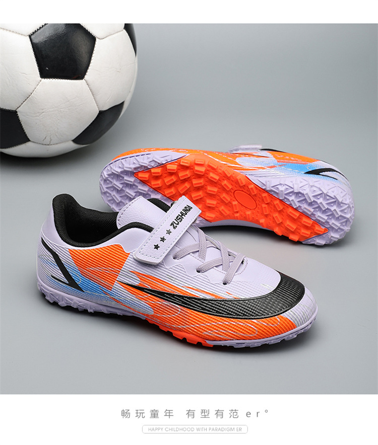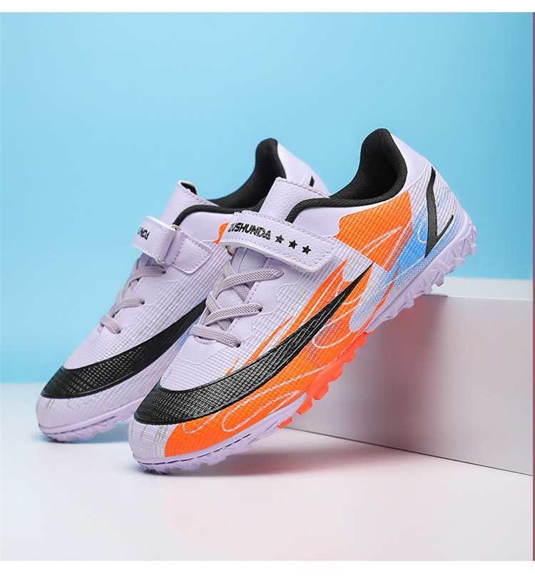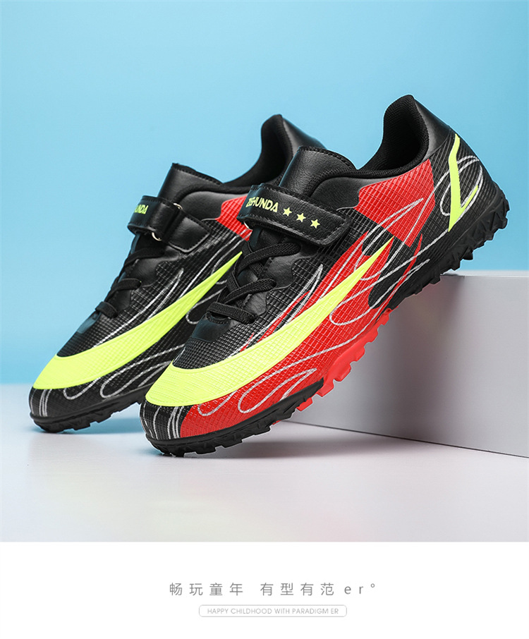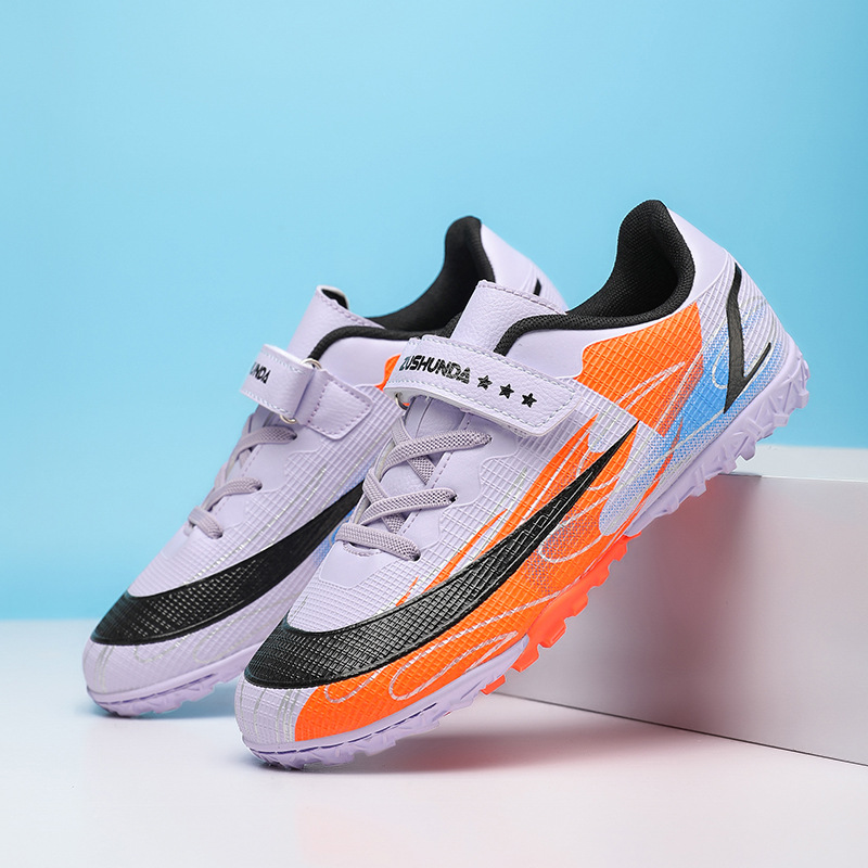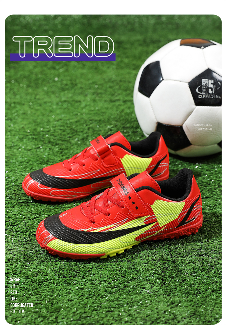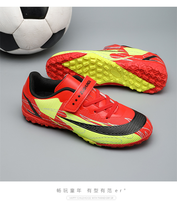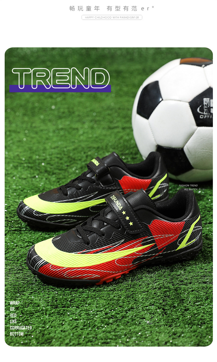 새로운 어린이 축구화 TF 깨진 손톱 소년 벨크로 소녀 미끄럼 방지 내마모성 청소년 잔디 스포츠 신발