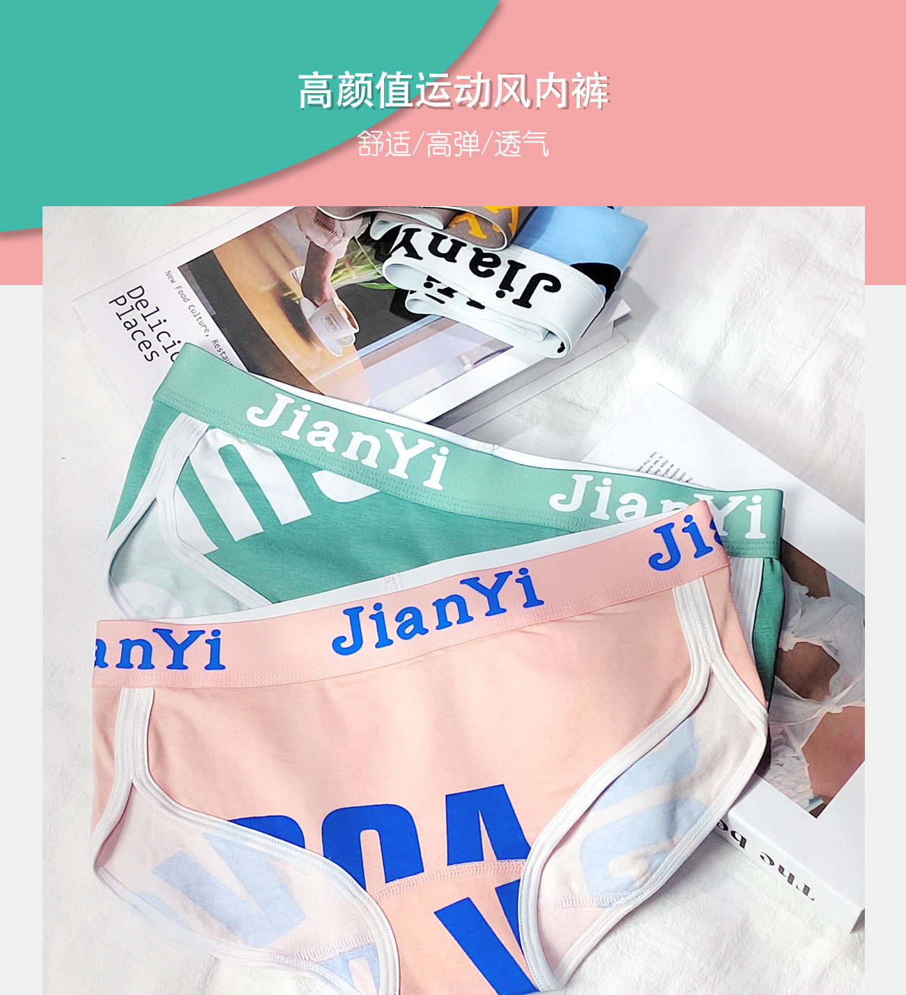 Jiyi 여성의 면 속옷 트렌디 한 편지 인쇄 스포츠 스타일 미드 웨이스트 소녀의 팬티 항균 면 가랑이스토어 가기