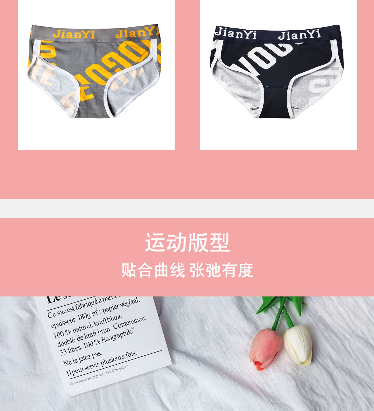 Jiyi 여성의 면 속옷 트렌디 한 편지 인쇄 스포츠 스타일 미드 웨이스트 소녀의 팬티 항균 면 가랑이