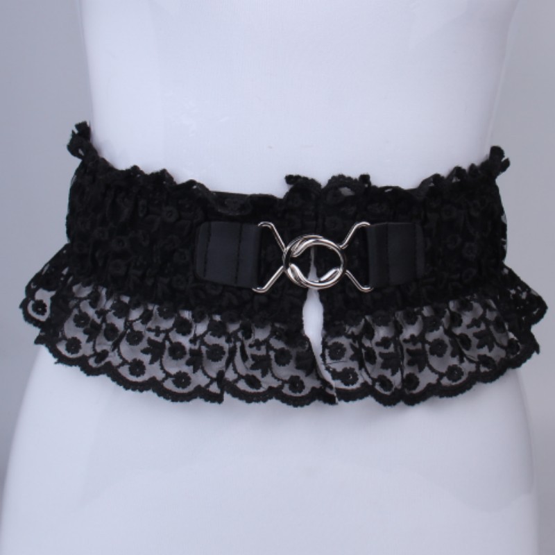 새로운 달콤한 탄성 와이드 웨이스트 커버 버클 여성용 한국 스타일 원피스 레이스 스트레치 장식 벨트