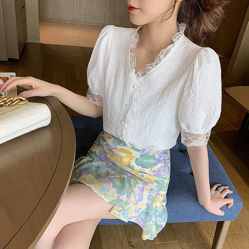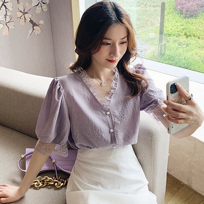 새로운 흰색 셔츠 여성의 프랑스 디자인 감각 틈새 웨스턴 스타일 달콤한 패션 쉬폰 셔츠 탑스토어 가기