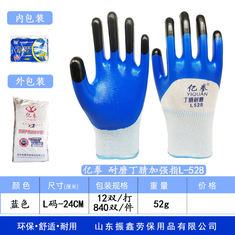 니트릴 장갑, 내마모성, 방수, 내유성, 산 및 알칼리성, 니트릴 담근 파란색 및 흰색 강화 검정색 손가락 노동 보호 장갑스토어 가기