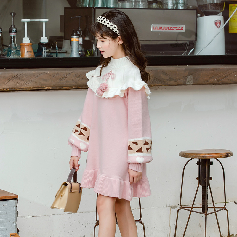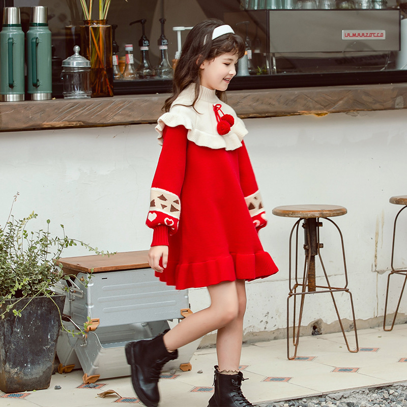 여아 스웨터 드레스 2025 새로운 가을, 겨울 큰 아동 스웨터 아동복 드레스 중간 길이 여아 레드 스커트스토어 가기