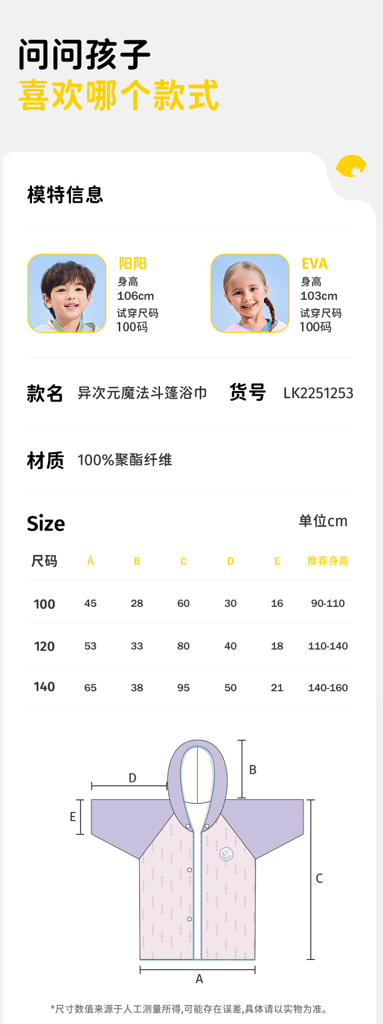 (3)尺码:100码【建议身高90-110cm】