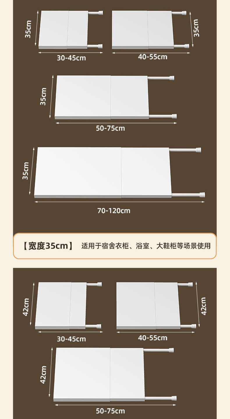 • 길이 70-120cm, 너비 35cm (패널도 수납 가능)