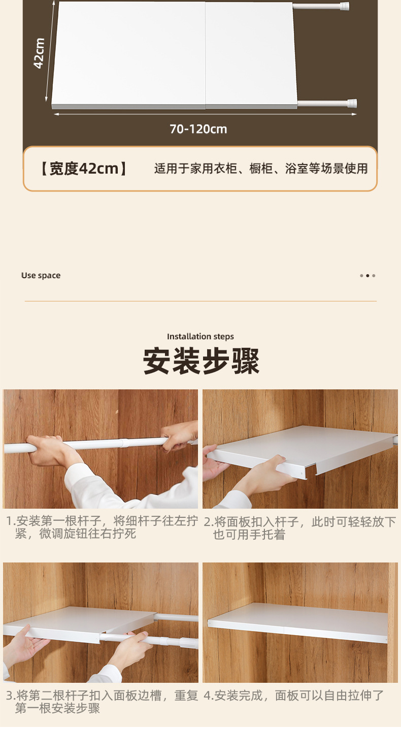 • 길이 70-120cm 너비 24cm (패널도 수납 가능)