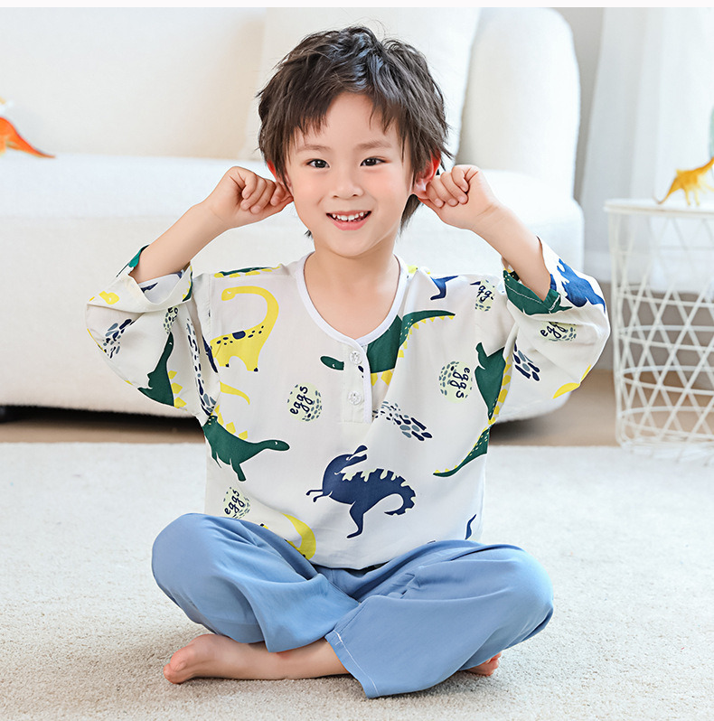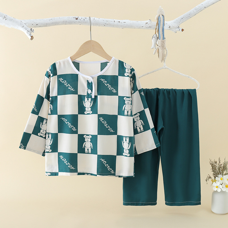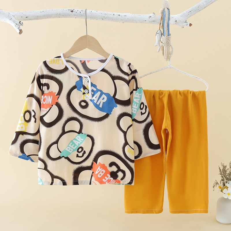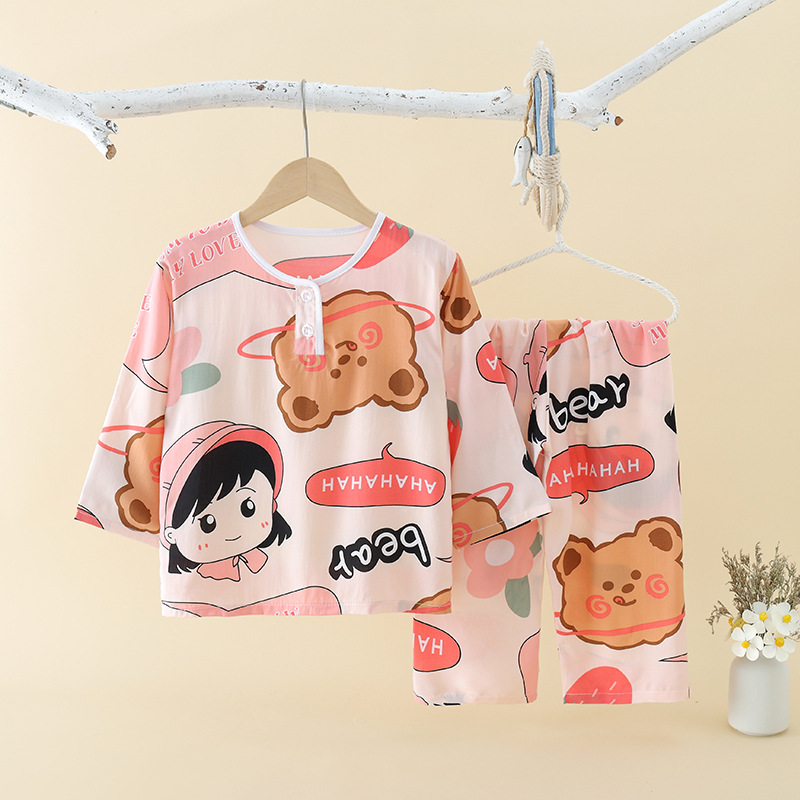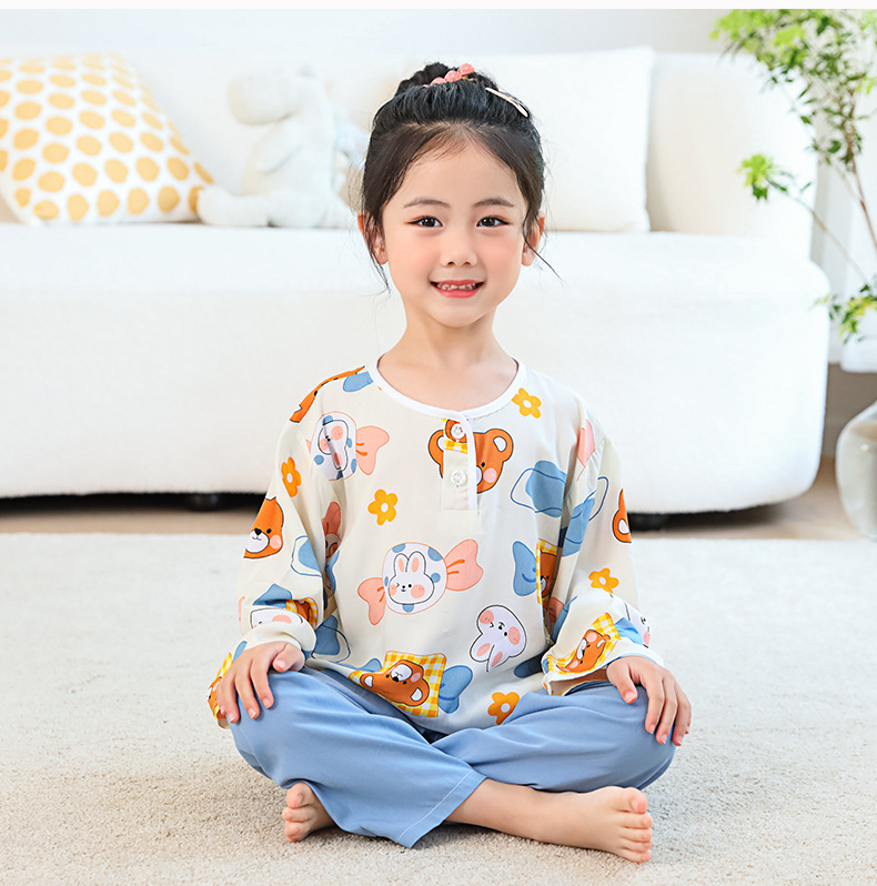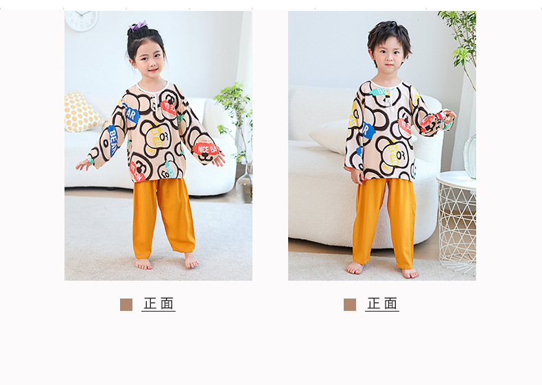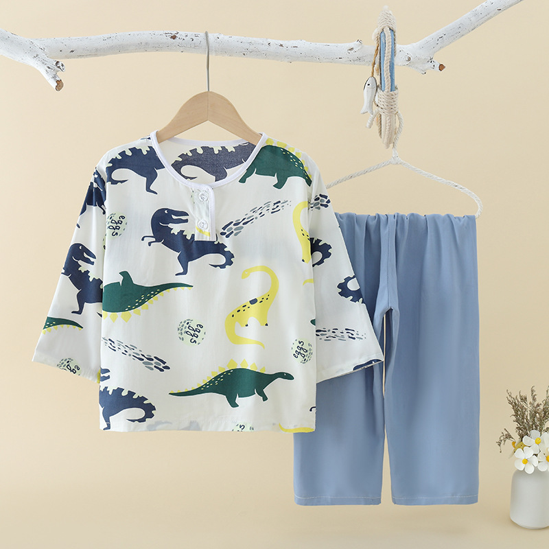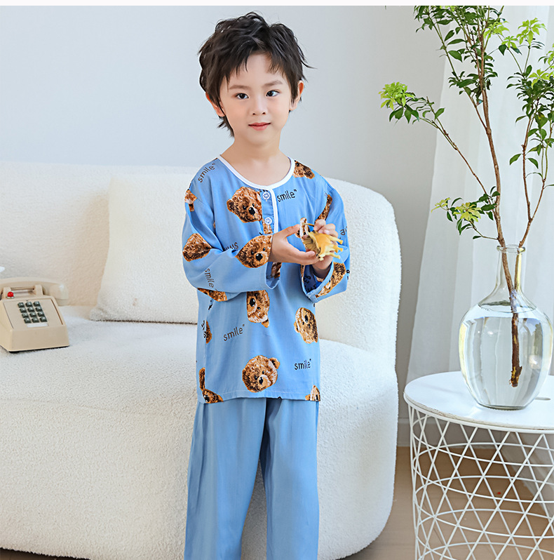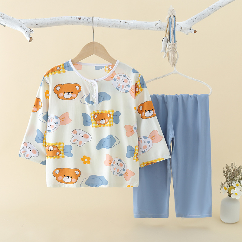 여름 면 실크 어린이 잠옷 얇은 소년 소녀 아기 가정복 남아 면 실크 여아 에어컨 옷 세트스토어 가기