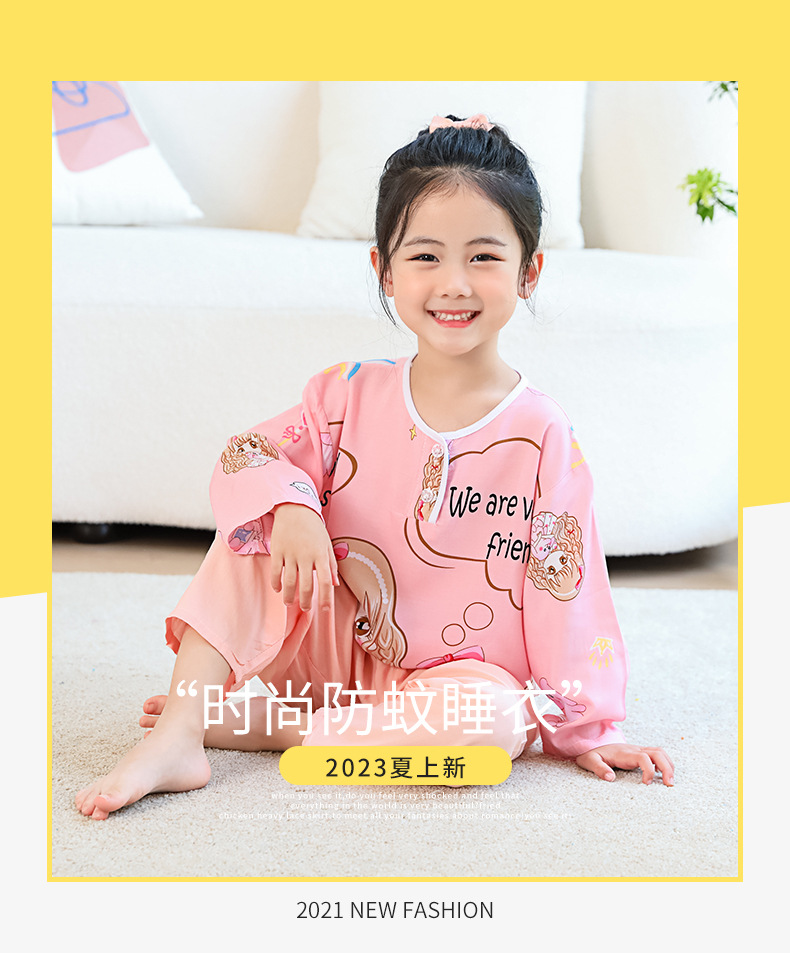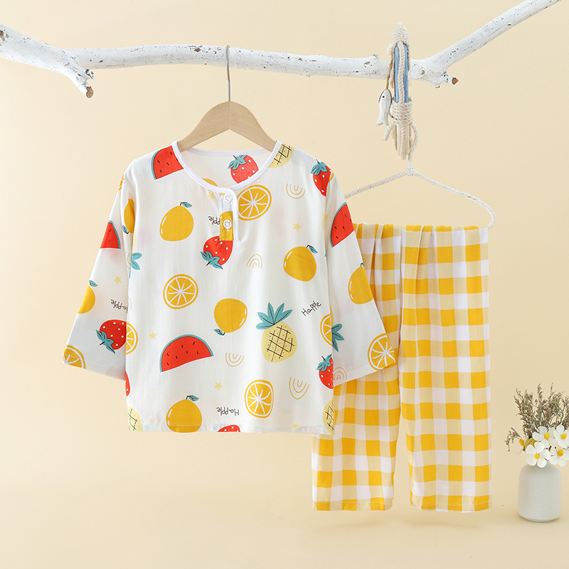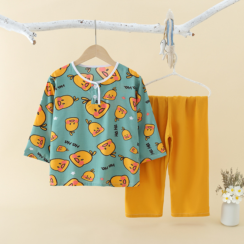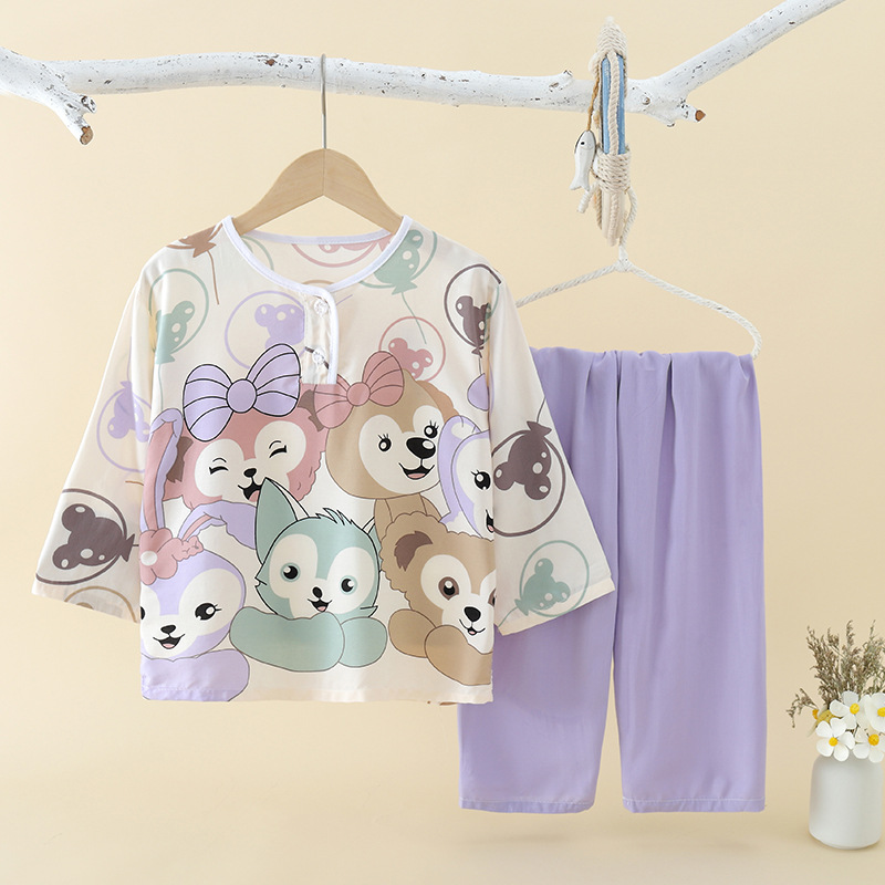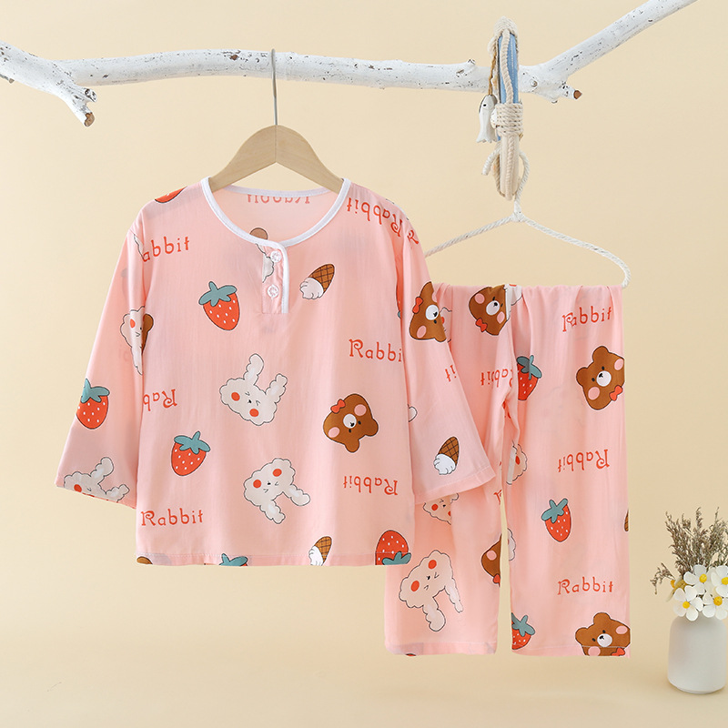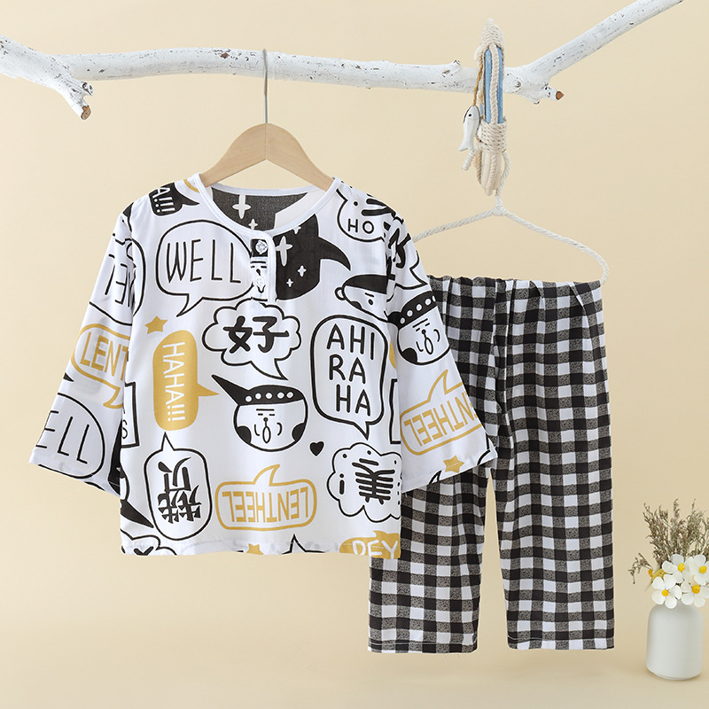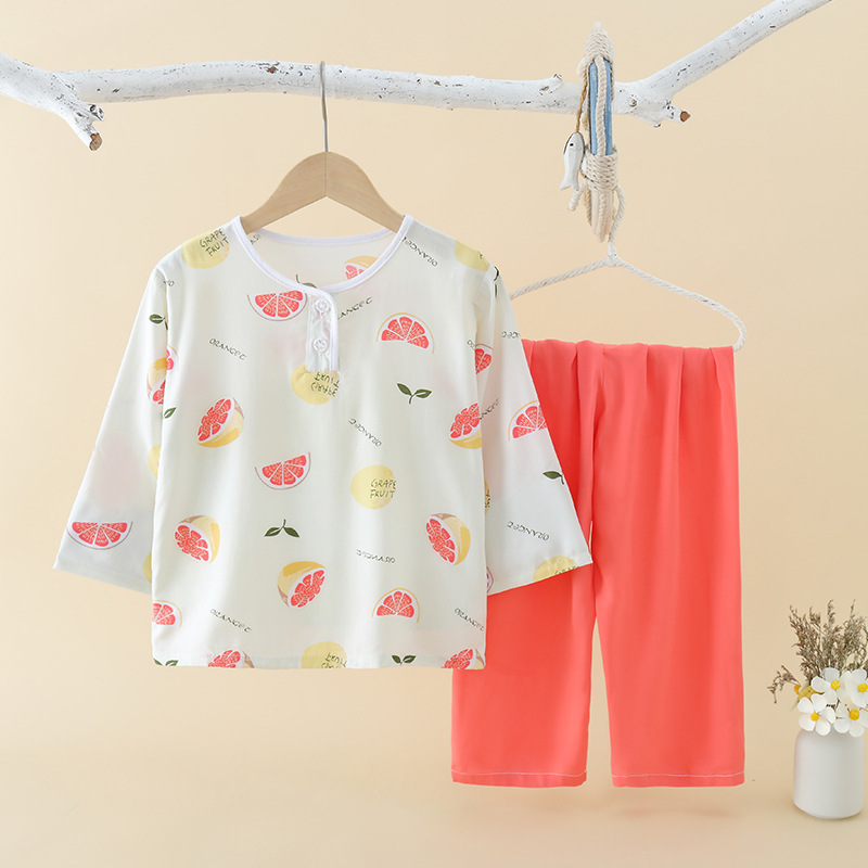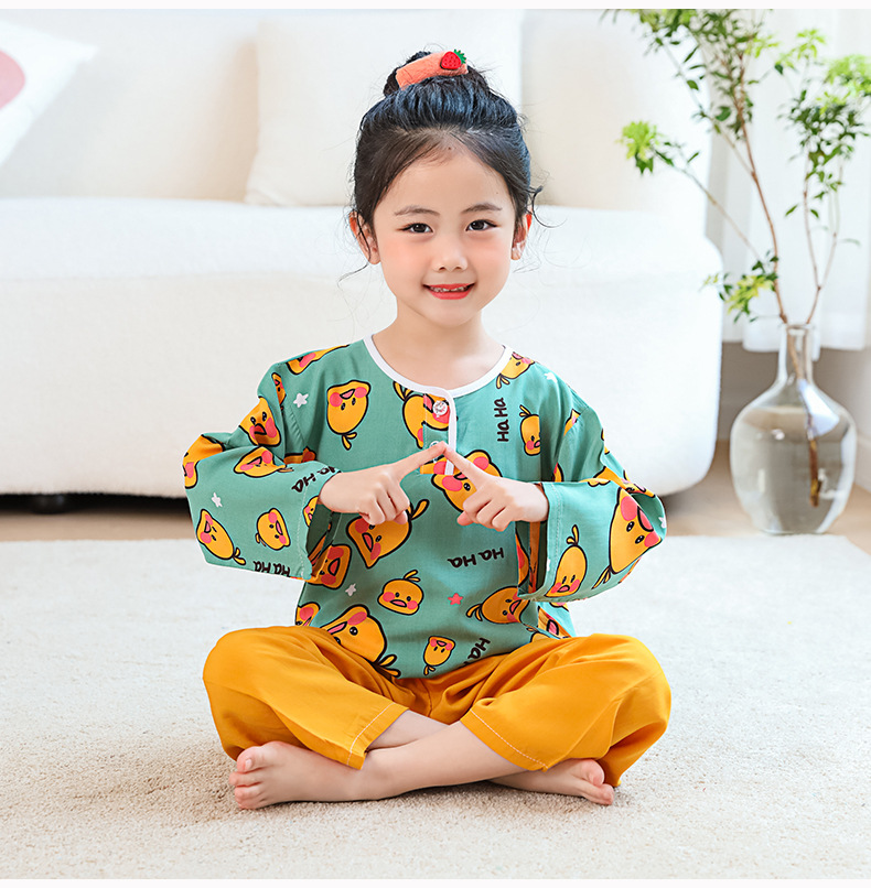 여름 면 실크 어린이 잠옷 얇은 소년 소녀 아기 가정복 남아 면 실크 여아 에어컨 옷 세트스토어 가기
