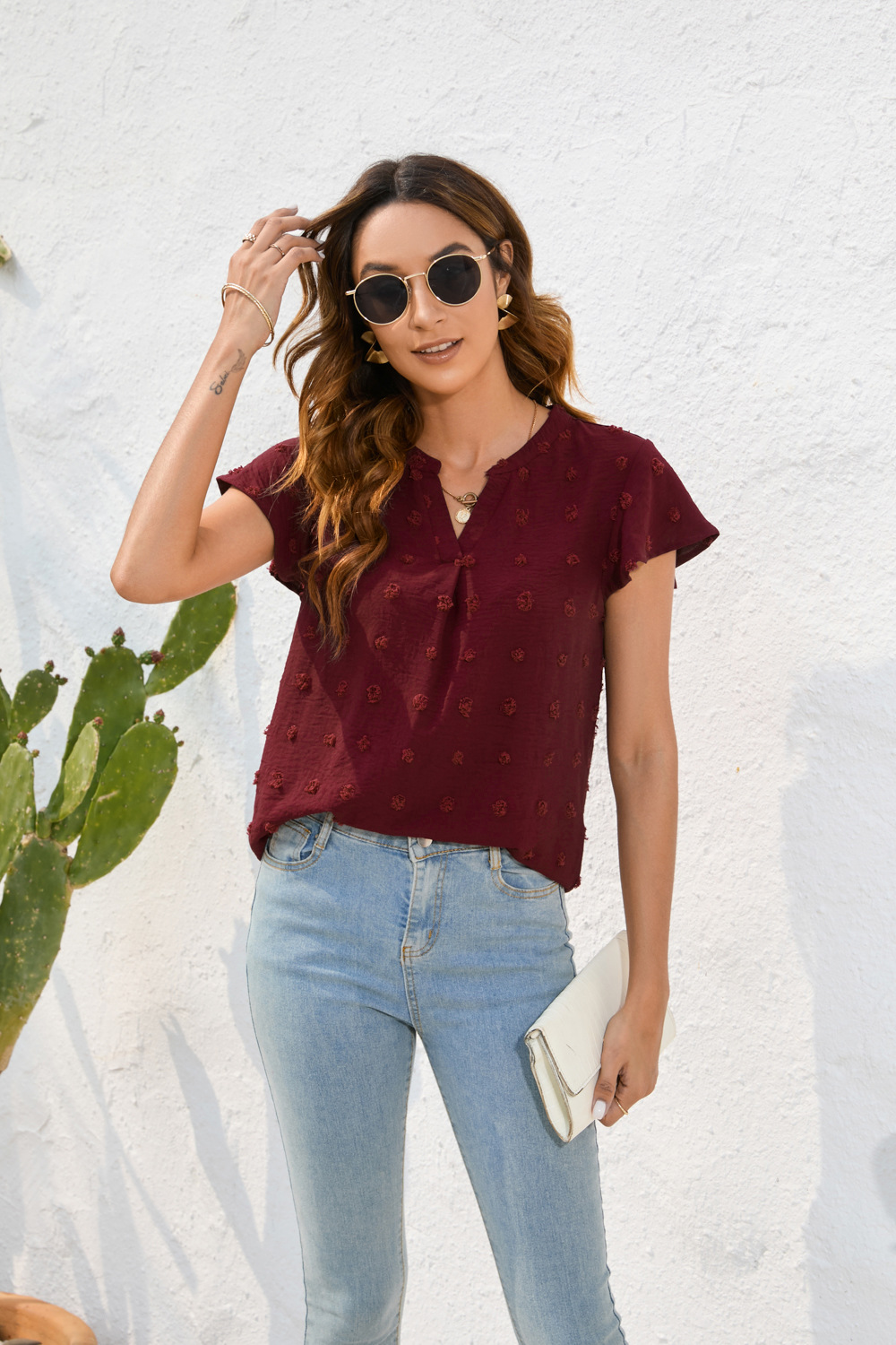 아마존 크로스 보더 봄과 여름 여성용 루즈한 캐주얼 티셔츠 여성용 크루넥 반팔 통근 퍼 볼 탑스토어 가기