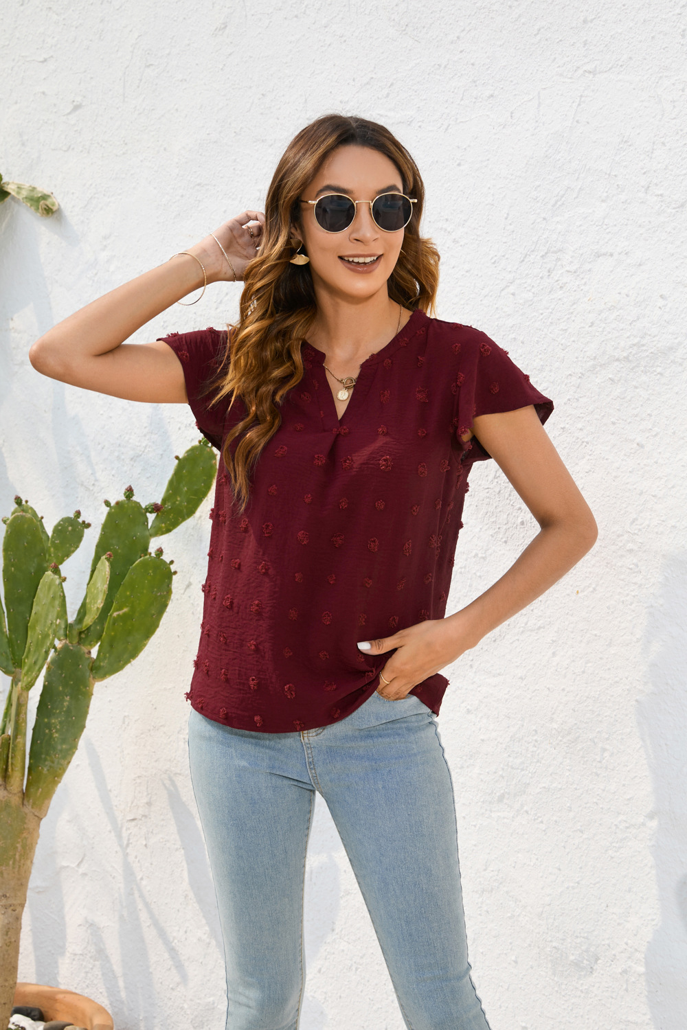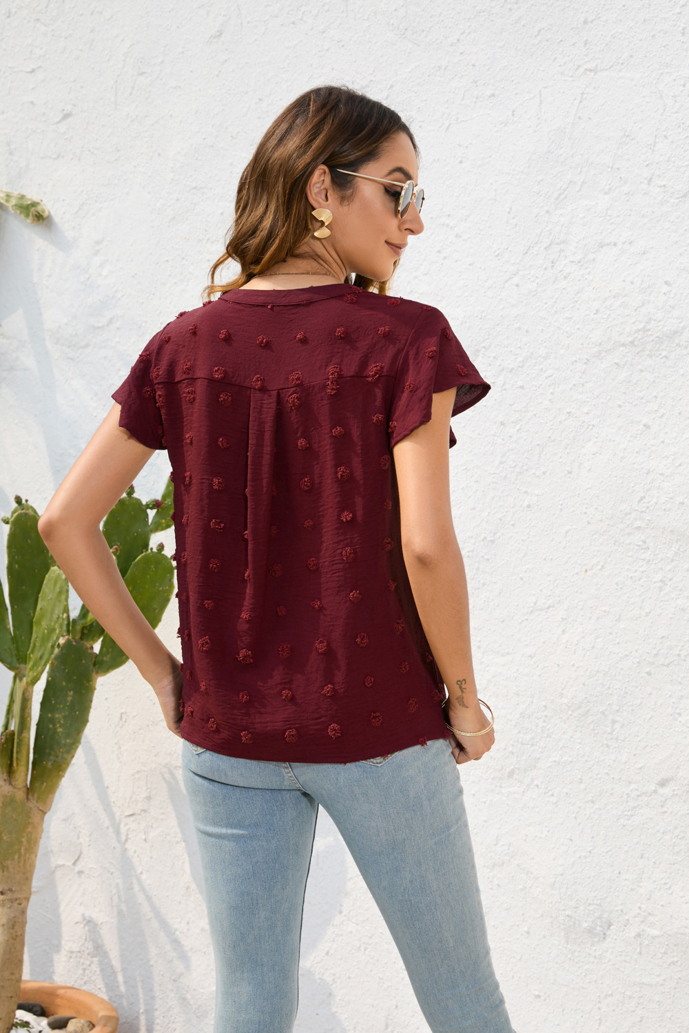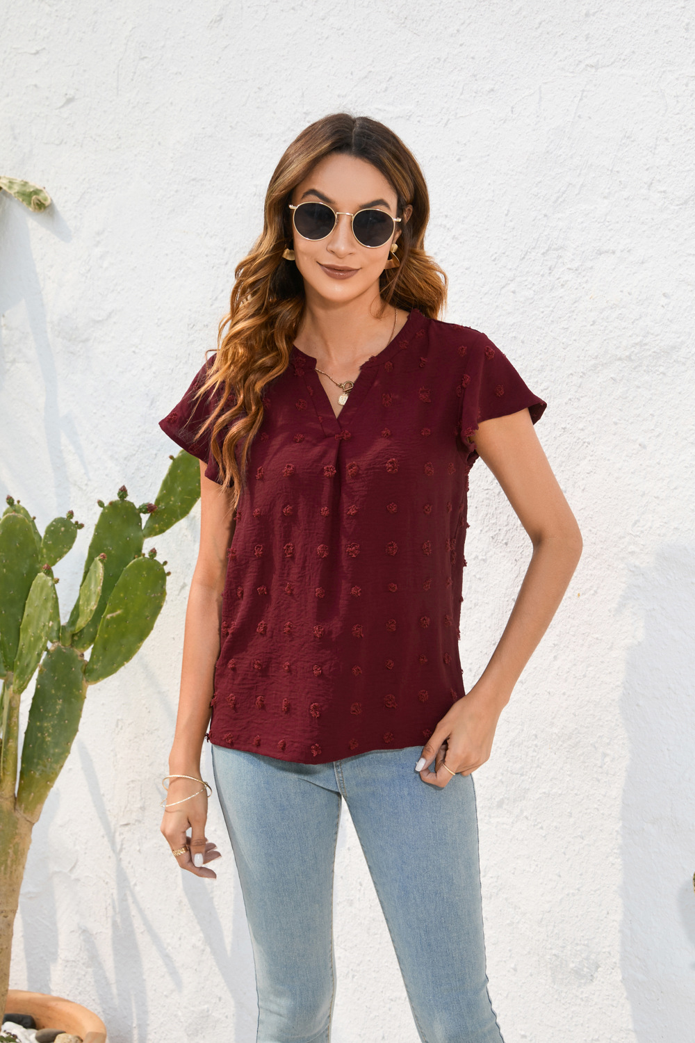 아마존 크로스 보더 봄과 여름 여성용 루즈한 캐주얼 티셔츠 여성용 크루넥 반팔 통근 퍼 볼 탑