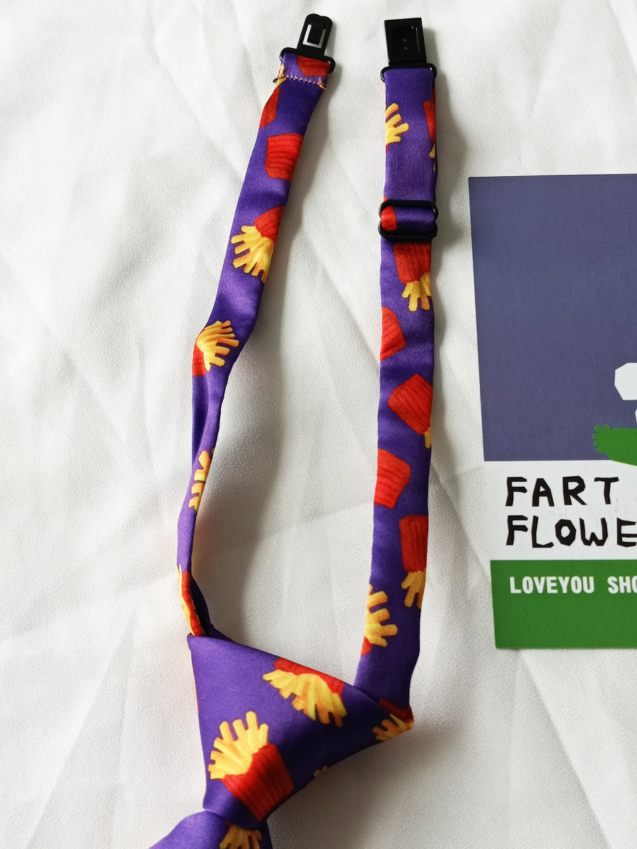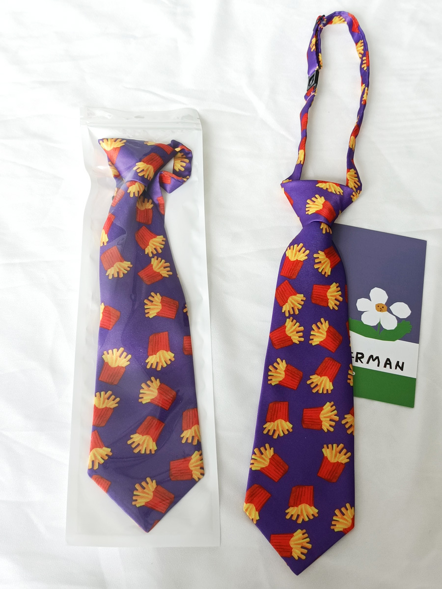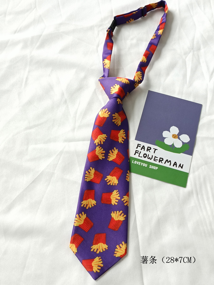 보라색 감자 튀김 재미있는 크리 에이 티브 쿨 캐주얼 프린트 일반 넥타이 여성용 짧은 매듭없는 어린이 남성 장식 패션