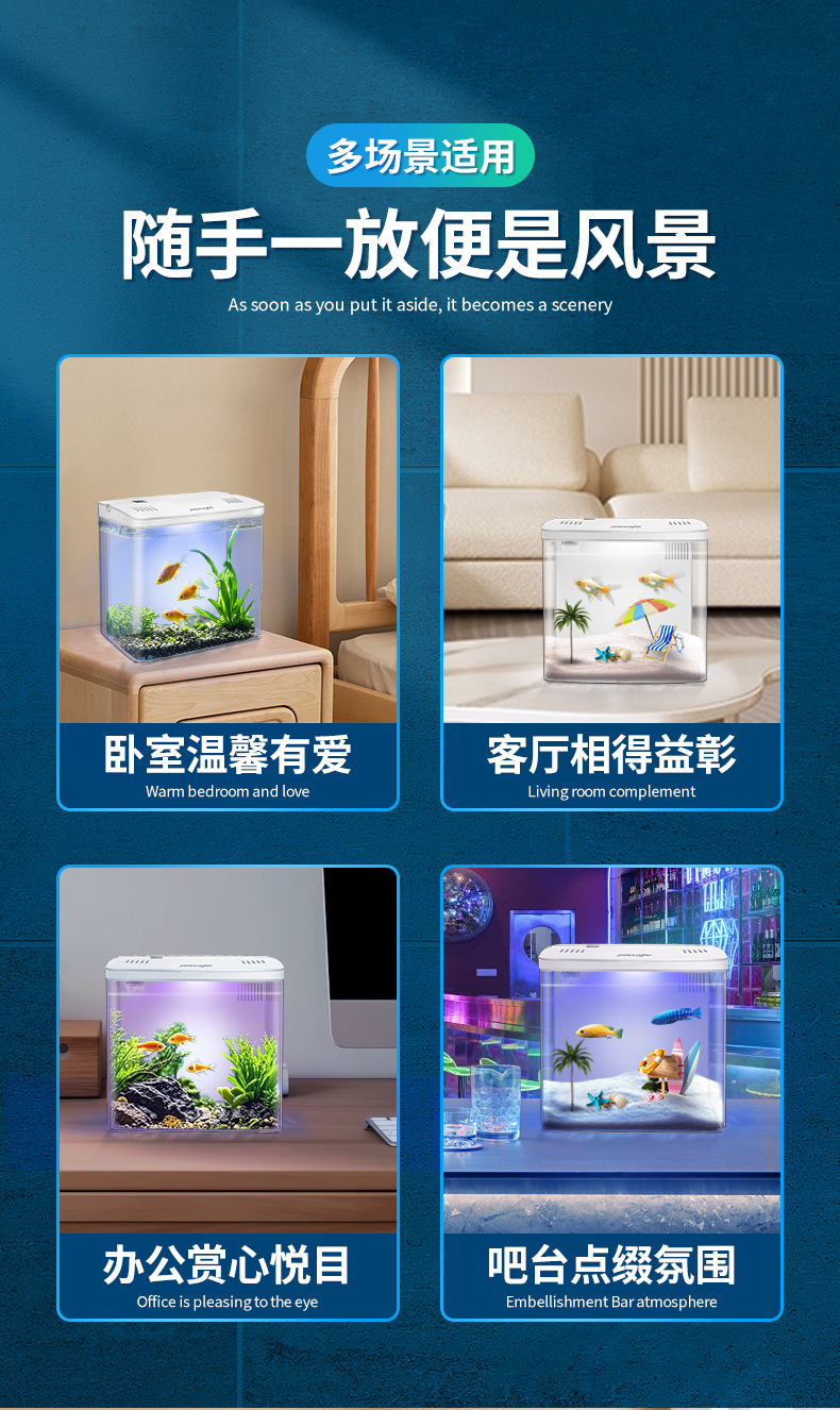 데스크탑 어항 새로운 수족관 게으른 물 무료 자기 순환 생태 어항 거실 작은 생태 금붕어 탱크스토어 가기