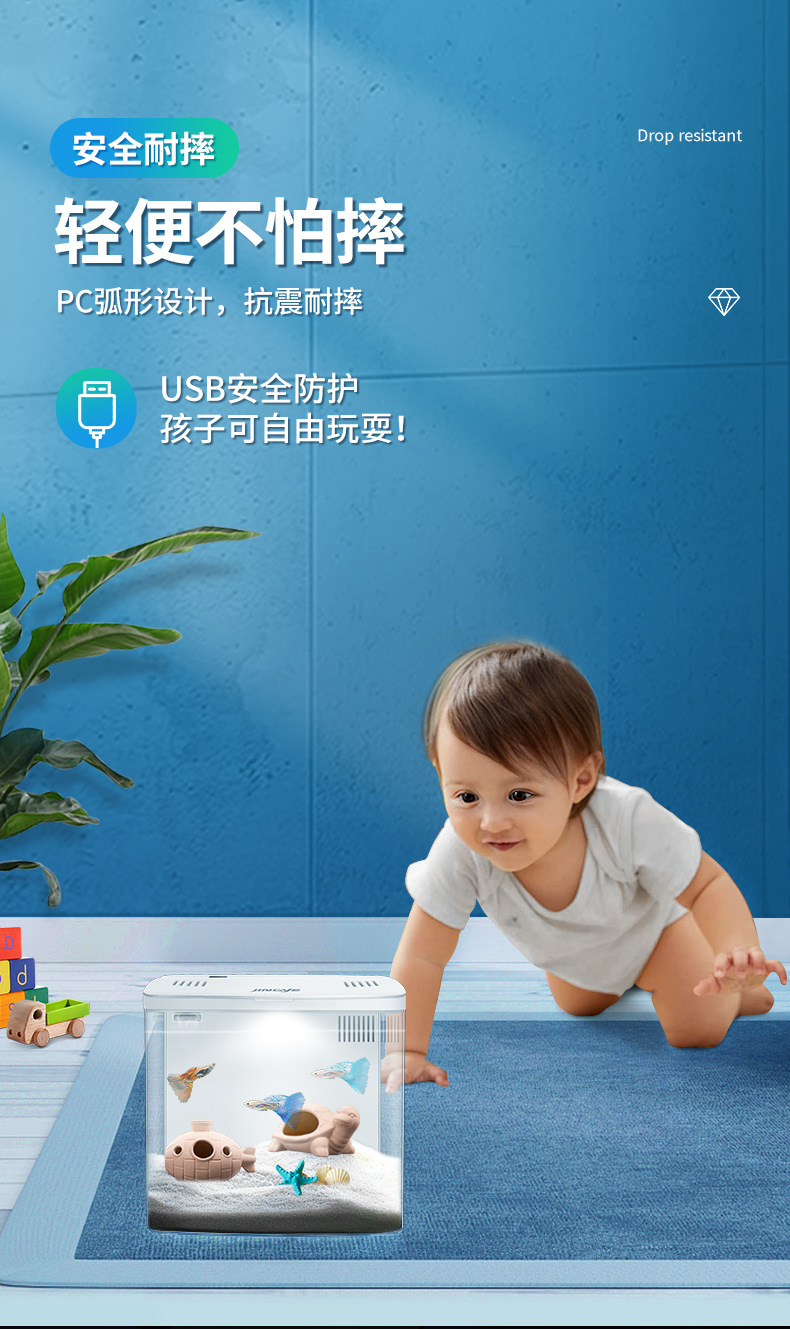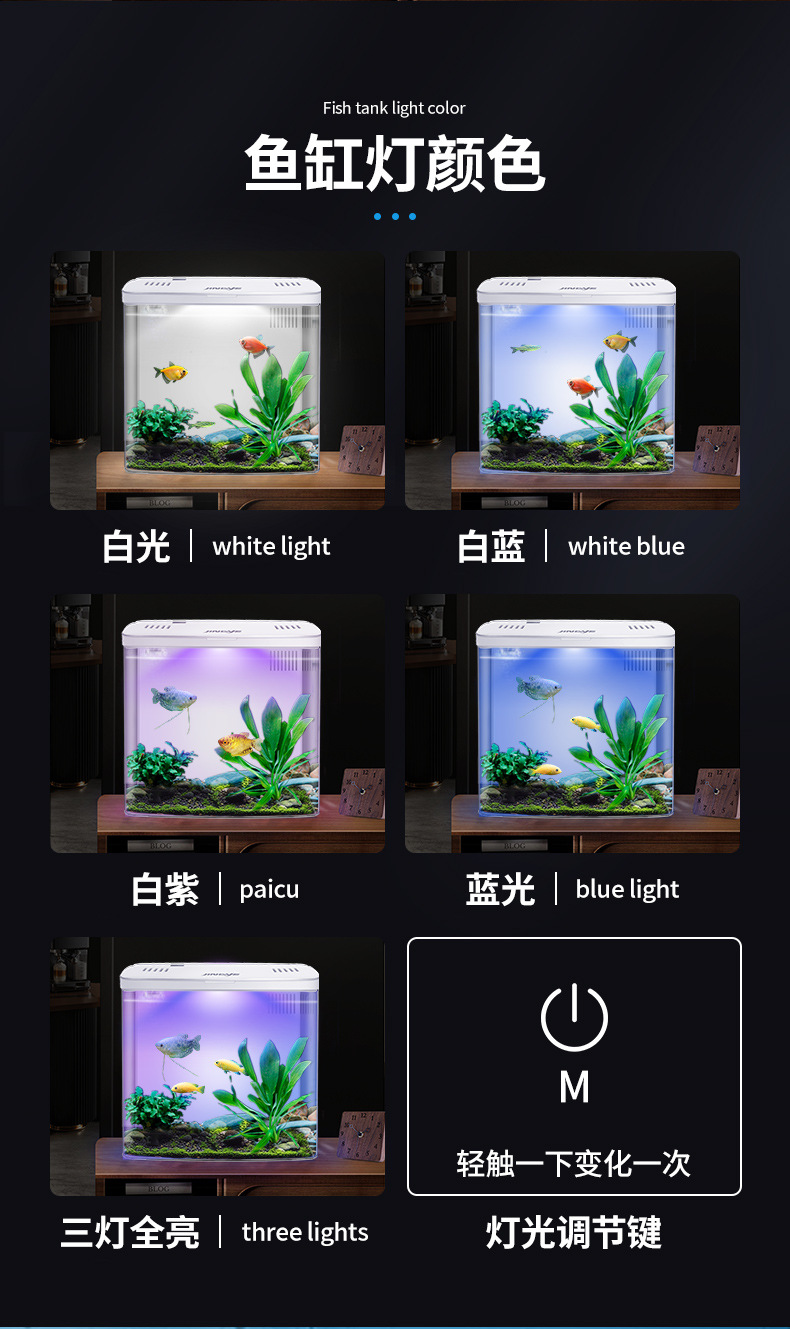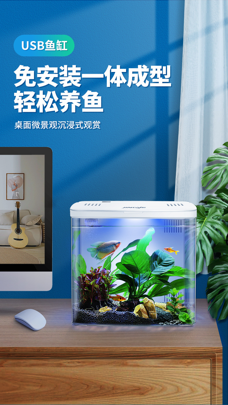 데스크탑 어항 새로운 수족관 게으른 물 무료 자기 순환 생태 어항 거실 작은 생태 금붕어 탱크