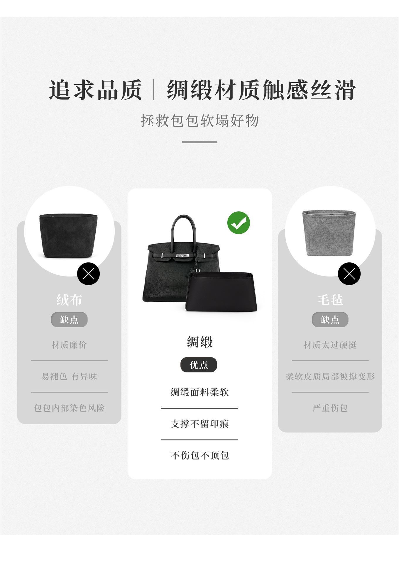 버킨백 이너백, 새틴 화장품 가방 수납백, 보호용 이너 수납백, 지지대가 있는 중형 가방에 적합스토어 가기