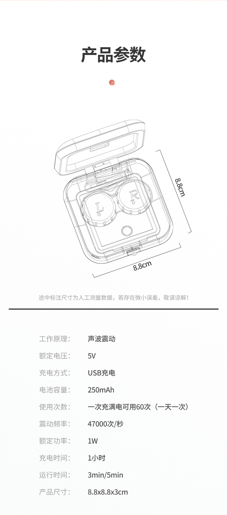 USB 콘택트 렌즈 클리너 전동 화장품 렌즈 박스 각막 플라스틱 렌즈 자동 청소 초음파 헹굼 기계스토어 가기