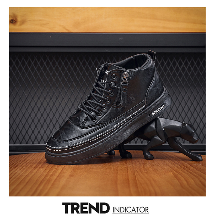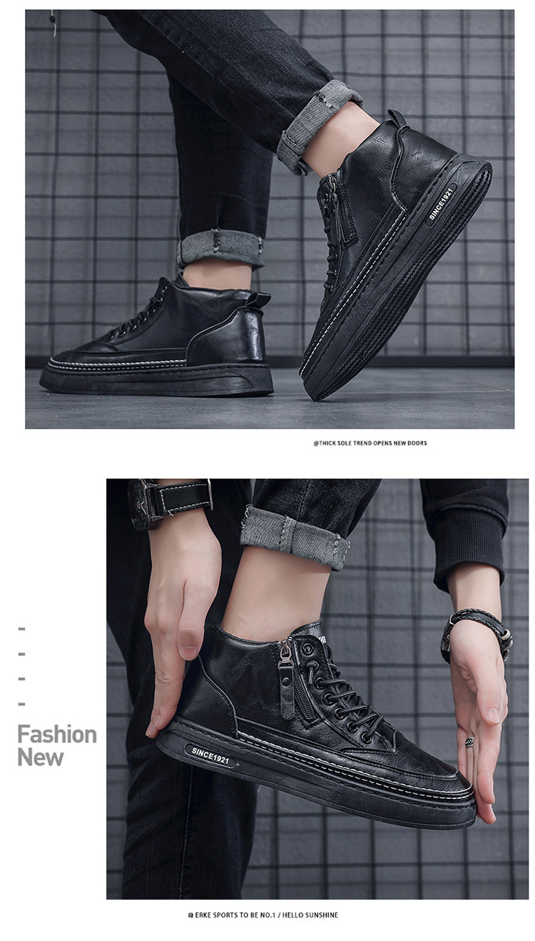 남성 신발 봄과 가을 새로운 마틴 부츠 하이 헬프 캐주얼 플레이트 신발 트렌드 조커 블랙