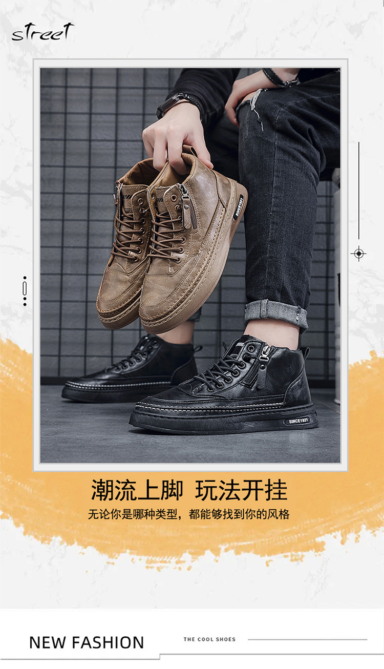 남성 신발 봄과 가을 새로운 마틴 부츠 하이 헬프 캐주얼 플레이트 신발 트렌드 조커 블랙스토어 가기