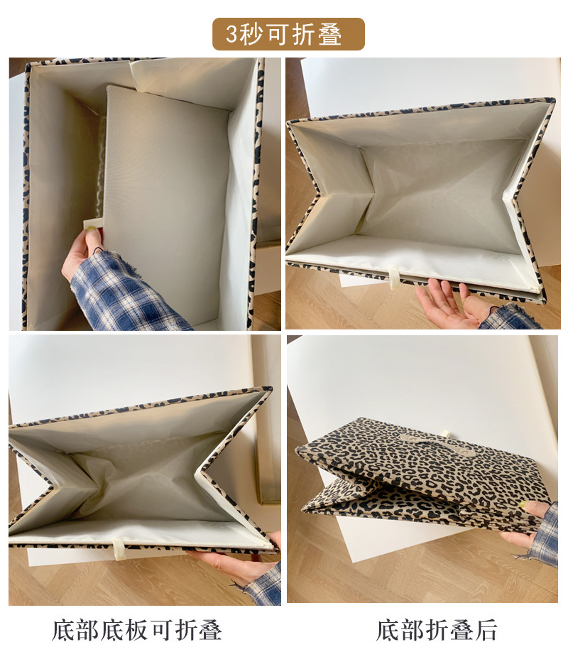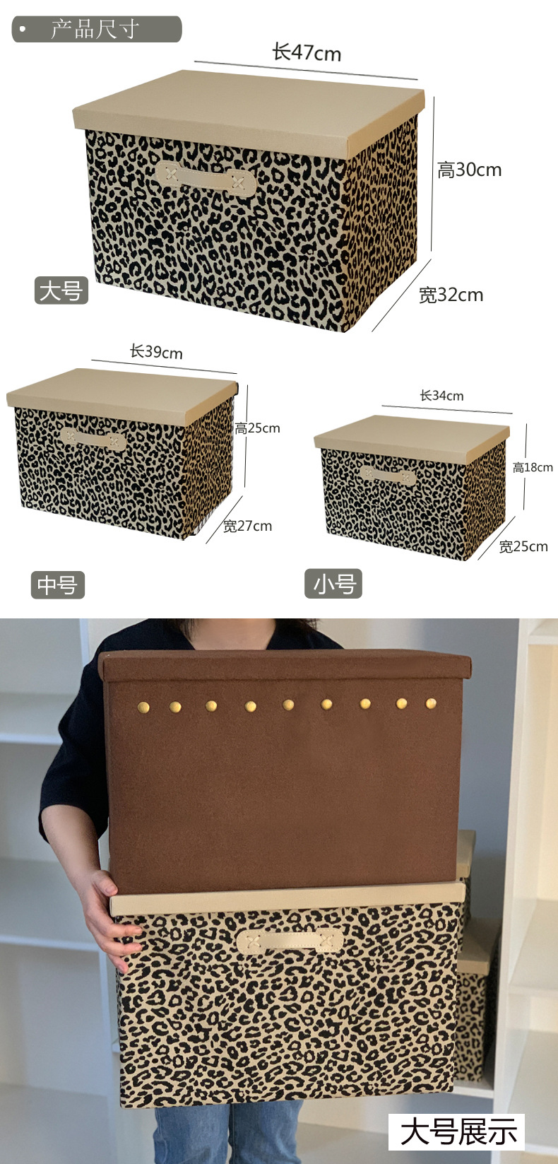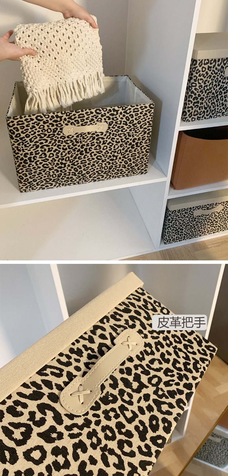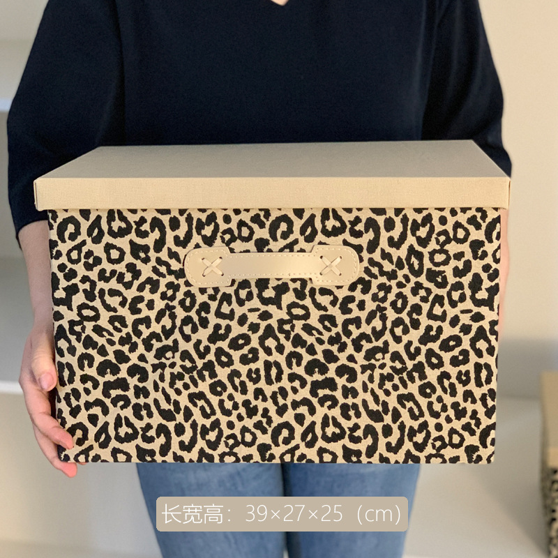 뚜껑이있는 고전적인 레오파드 무늬 패브릭 접이식 보관함 Liu Ding 옷 옷장 자동차 보관함 가정용 보관함스토어 가기