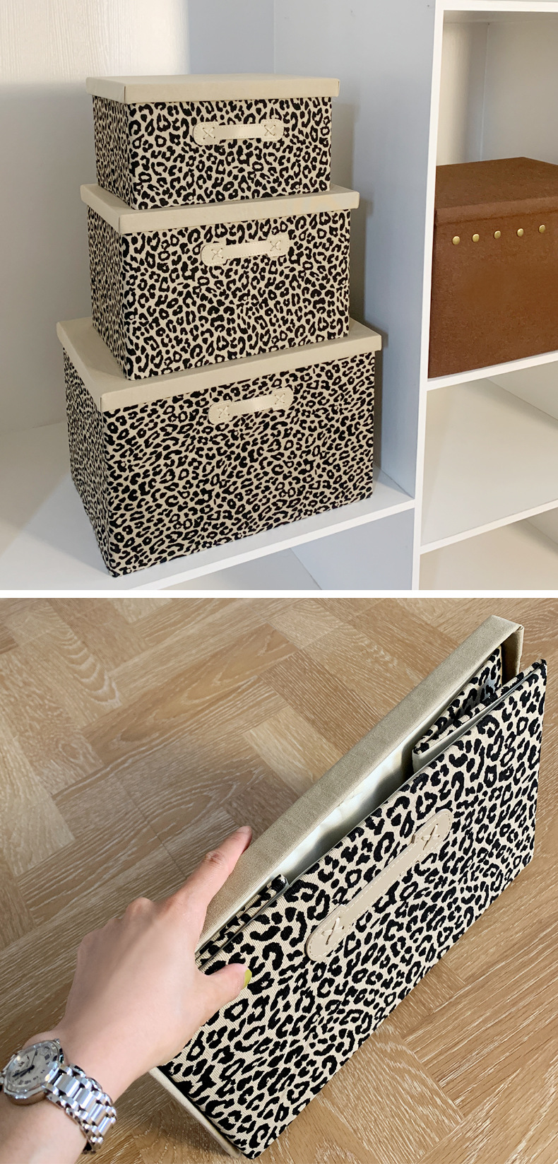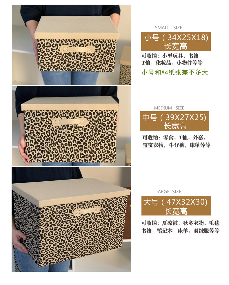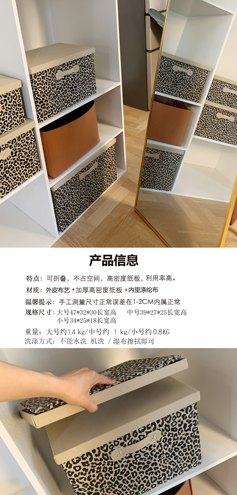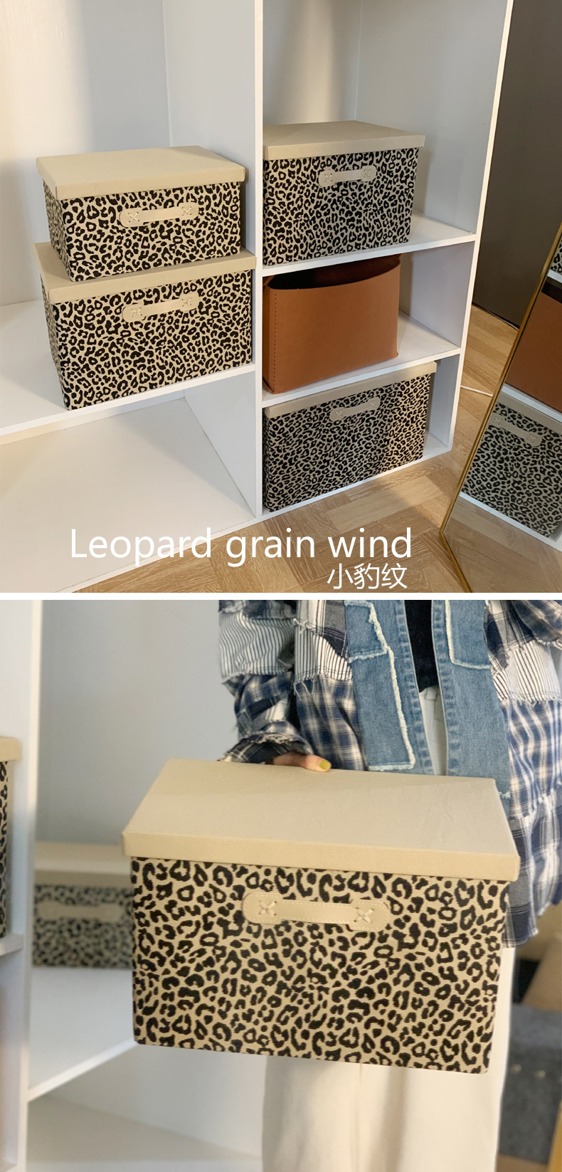 뚜껑이있는 고전적인 레오파드 무늬 패브릭 접이식 보관함 Liu Ding 옷 옷장 자동차 보관함 가정용 보관함스토어 가기