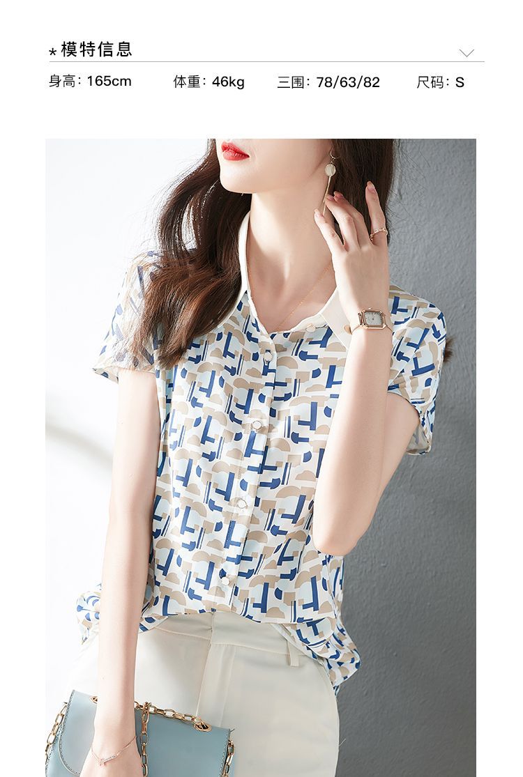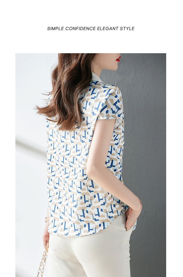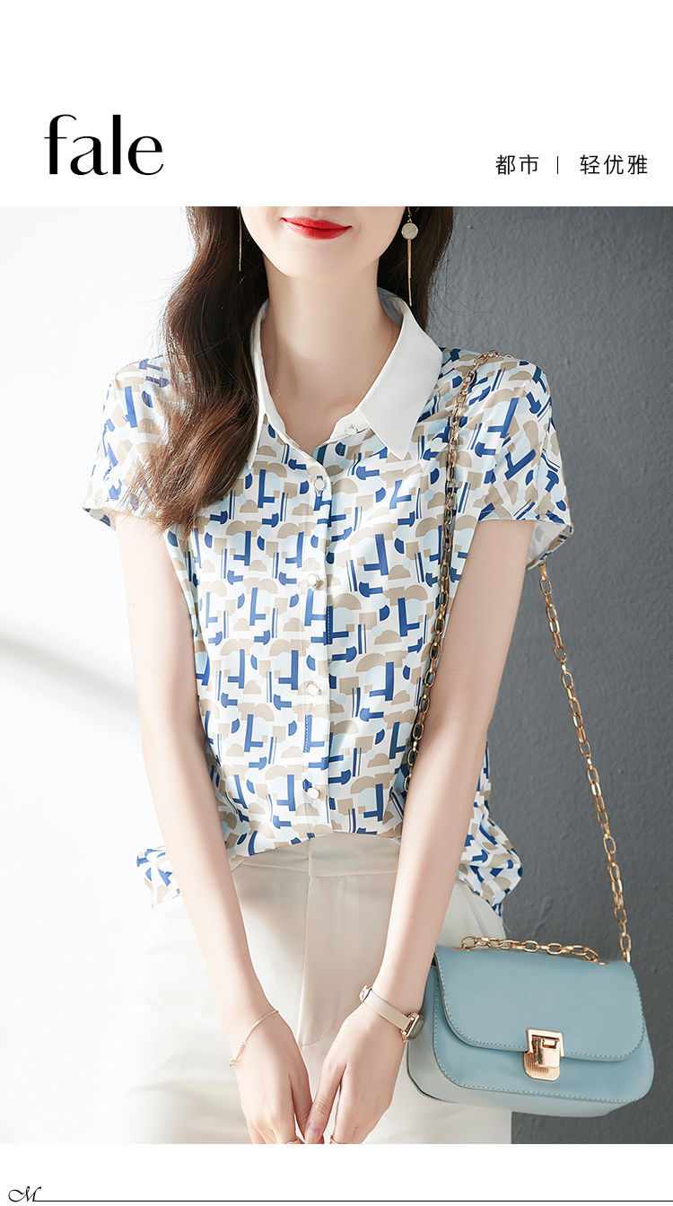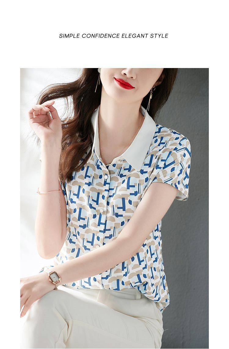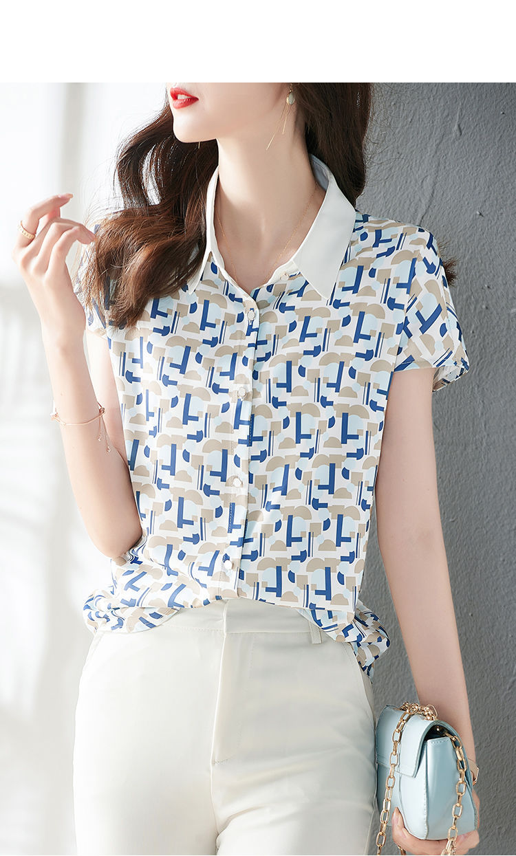 2023 여름 의류 새로운 간단한 모든 경기 기하학적 쉬폰 인쇄 소매 옷깃 패션 여성용 반소매 셔츠스토어 가기