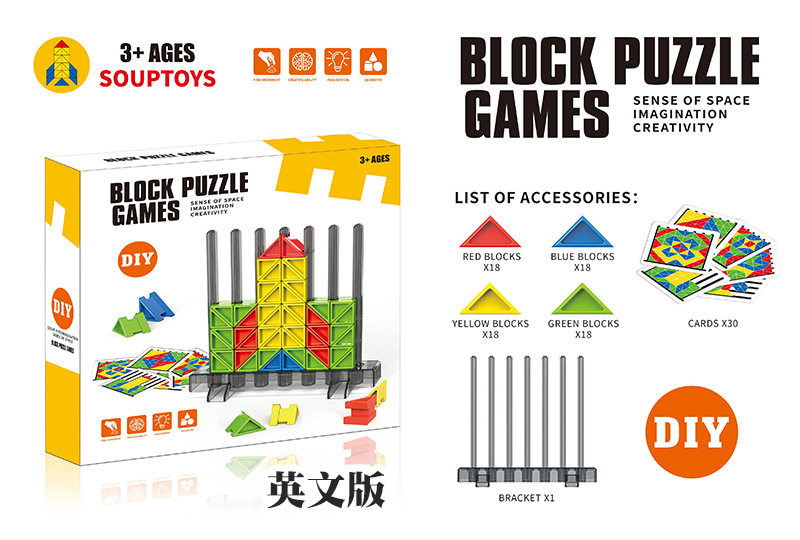 • 产品配件:拼图卡片X30,积木支架X1,积木块X72