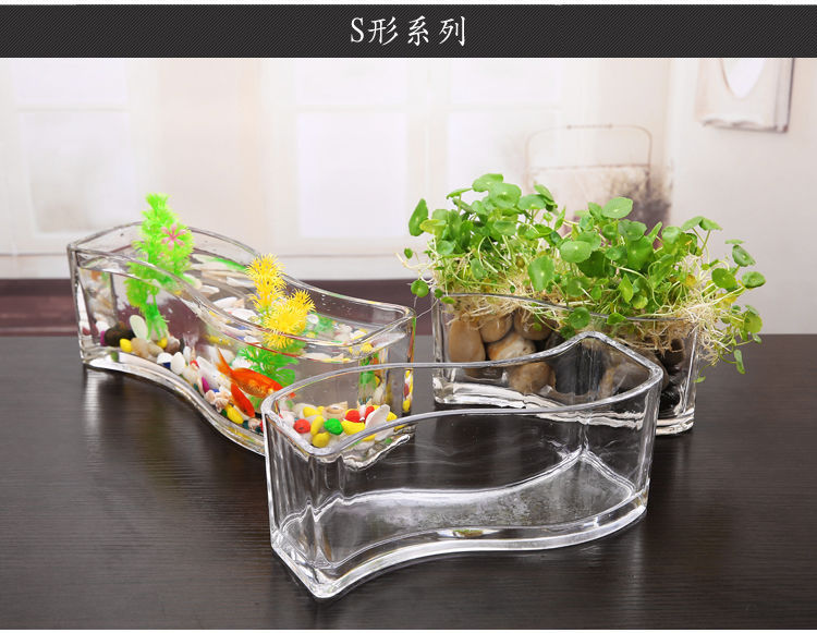 공장 직공급 직사각형 S자 창작 어항 도매 투명 유리 꽃병 수경식물 화분 S 탱크스토어 가기