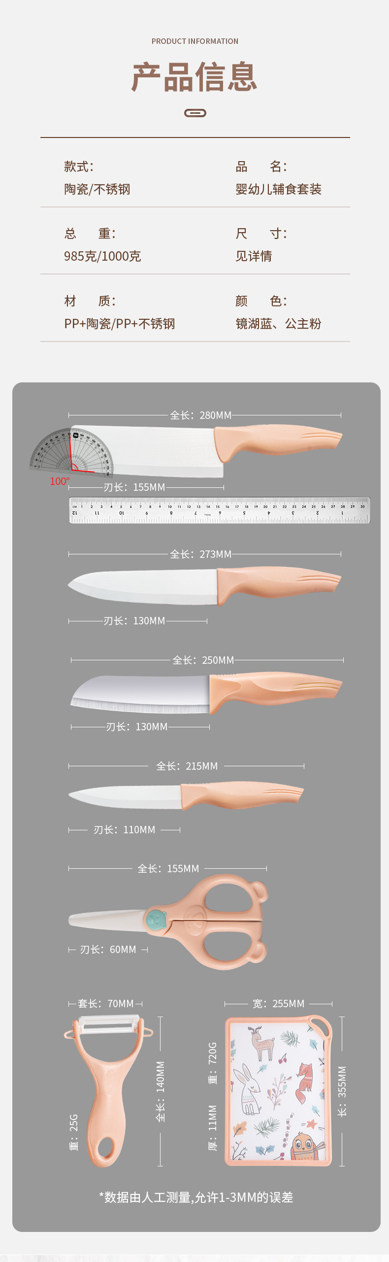 좋은 Lisuo 세라믹 주방 칼 도마 아기 야채 절단 조합 세트 칼 주방 아기 음식 보충 도구 과일 칼