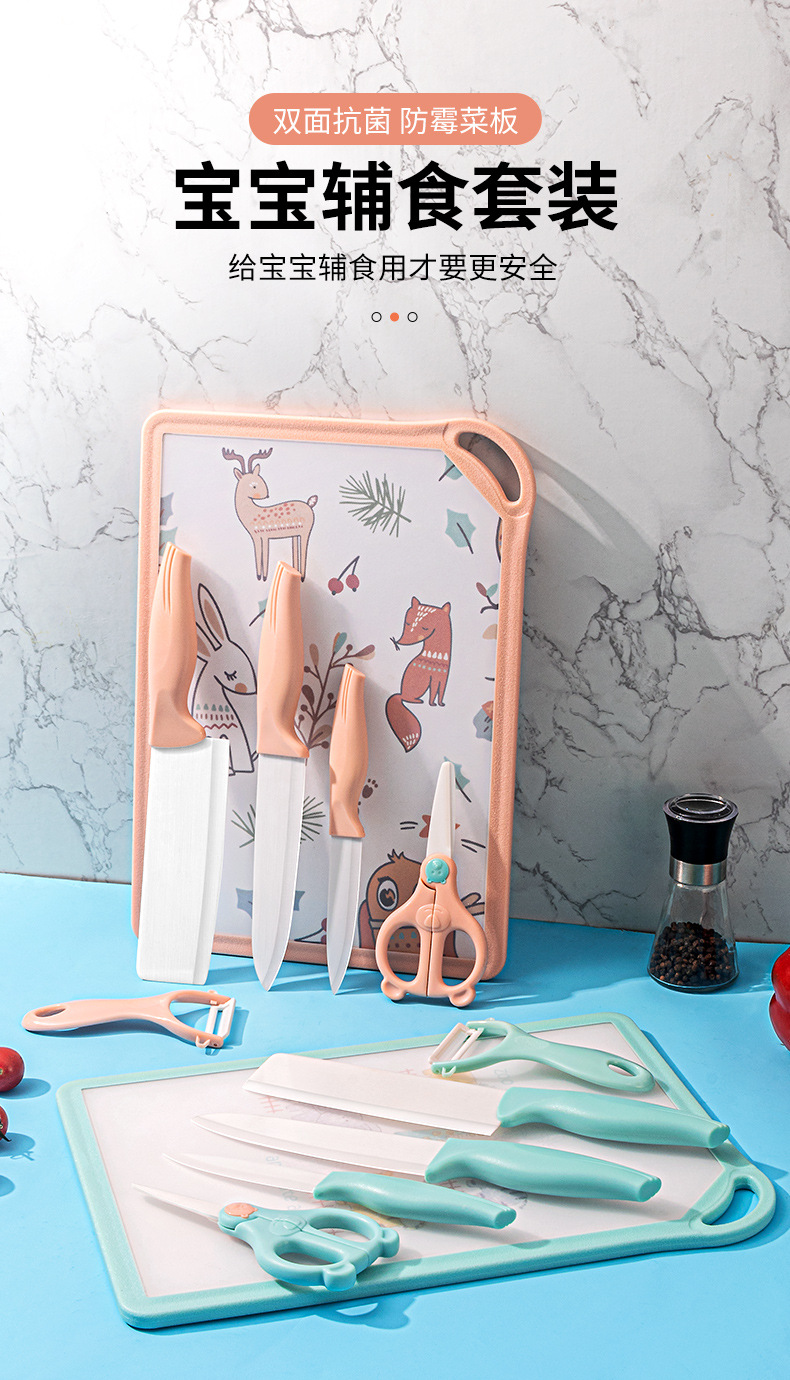 좋은 Lisuo 세라믹 주방 칼 도마 아기 야채 절단 조합 세트 칼 주방 아기 음식 보충 도구 과일 칼스토어 가기
