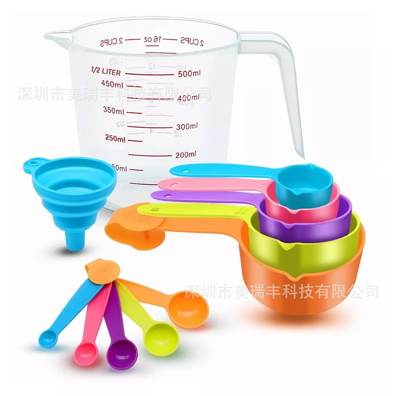 졸업 측정 컵 및 측정 숟가락 접이식 깔때기 12 개 세트 주방 과자 베이킹 도구