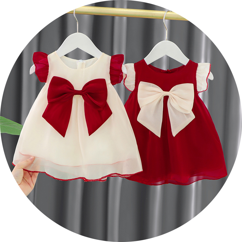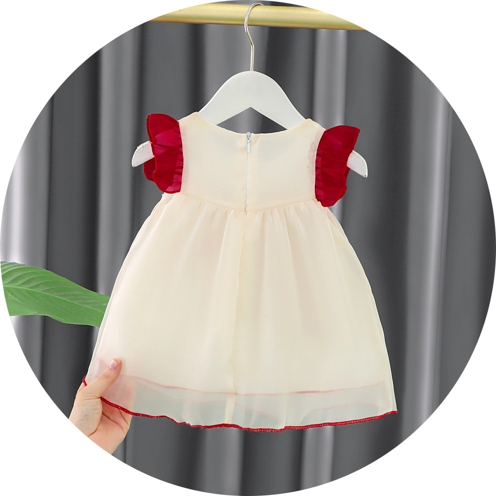 여자 공주 드레스 여름 2025 새로운 빨간색 어린이 인터넷 연예인 스타일 아기 소녀 활 스커트스토어 가기