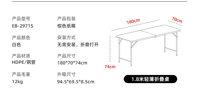 • 122 데스크탑 원피스 접이식 롱 테이블