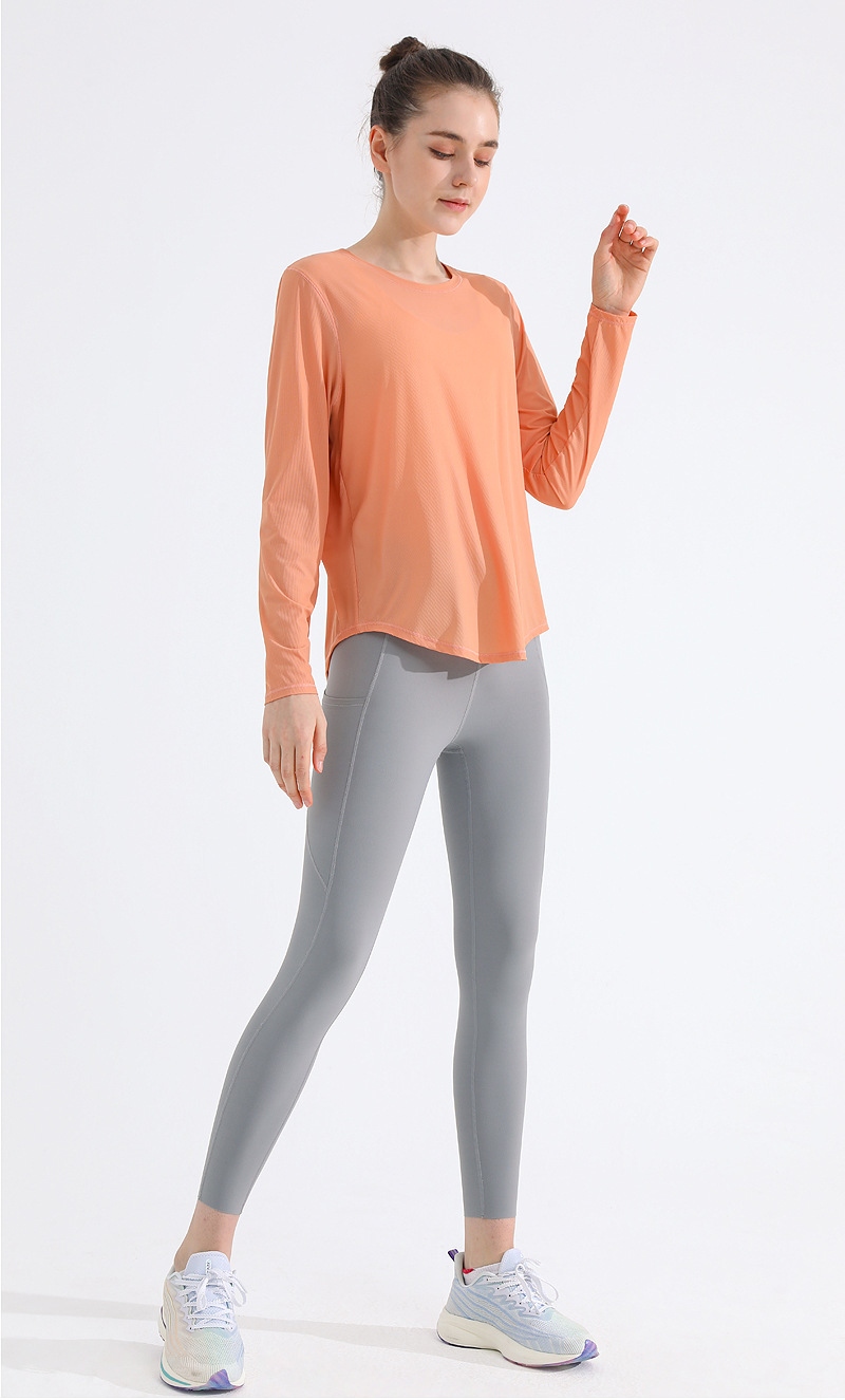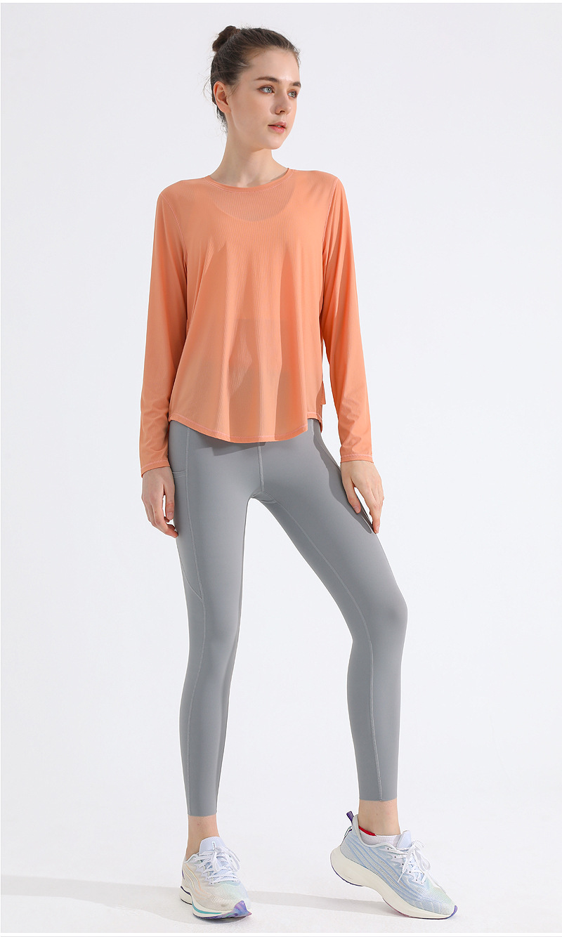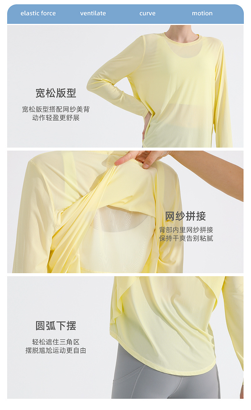 자외선 차단제 스포츠 블라우스 여성용 거즈 통기성 속건 피트니스 탑 느슨한 아메리칸 백 러닝 요가 의류 긴팔 티셔츠스토어 가기