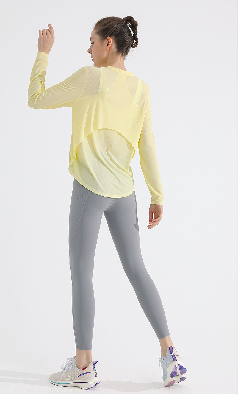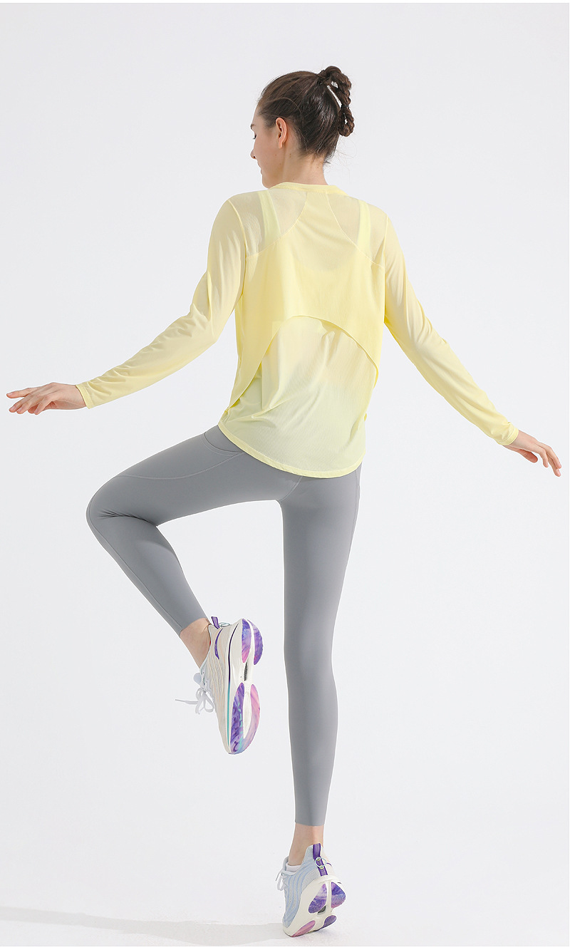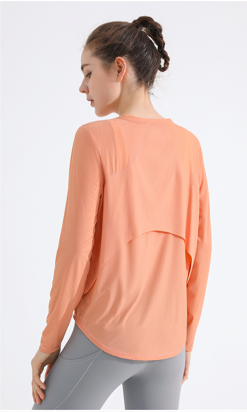 자외선 차단제 스포츠 블라우스 여성용 거즈 통기성 속건 피트니스 탑 느슨한 아메리칸 백 러닝 요가 의류 긴팔 티셔츠