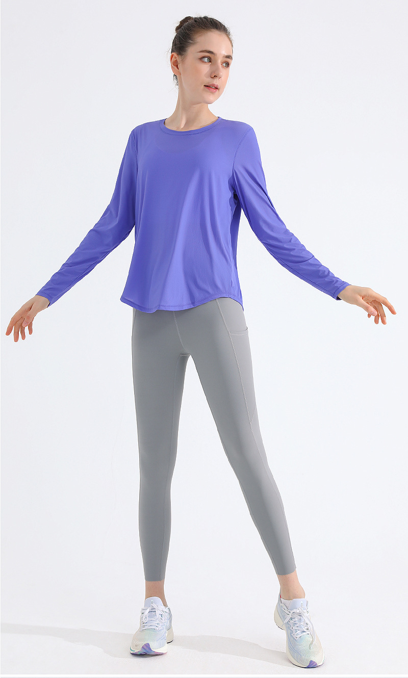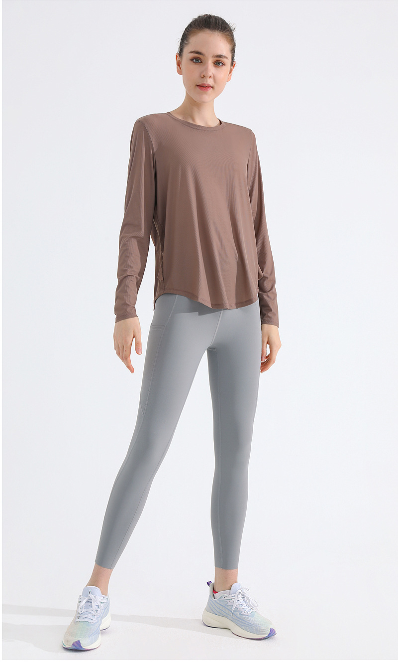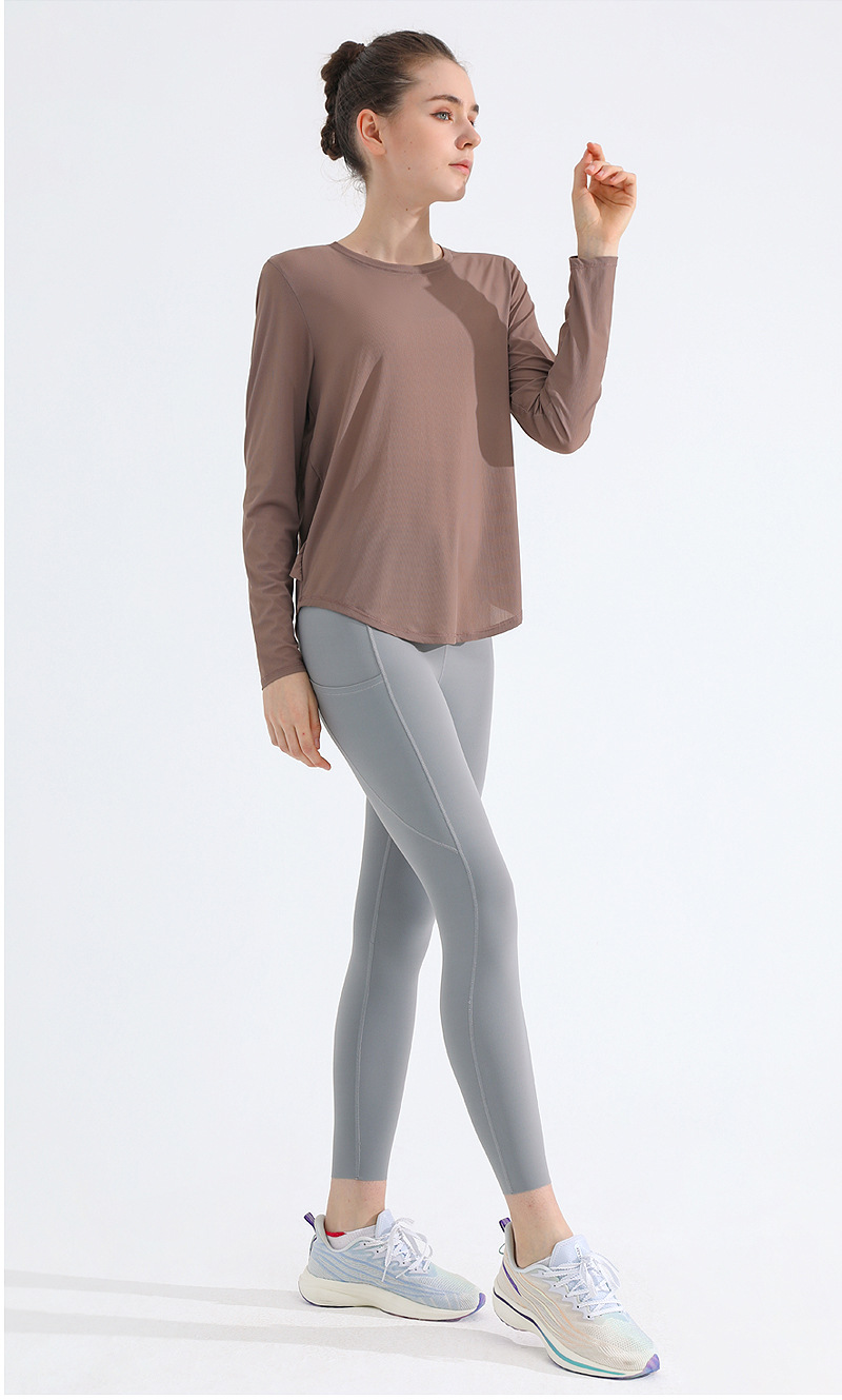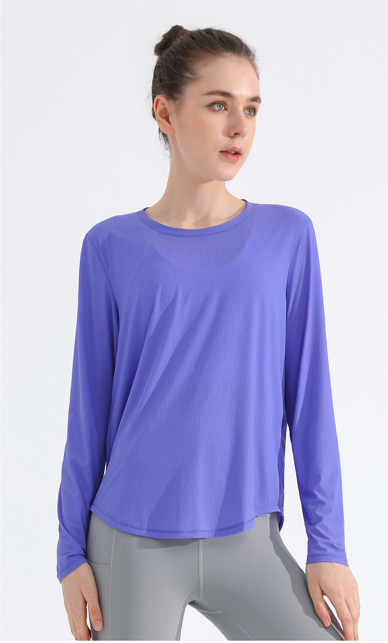자외선 차단제 스포츠 블라우스 여성용 거즈 통기성 속건 피트니스 탑 느슨한 아메리칸 백 러닝 요가 의류 긴팔 티셔츠