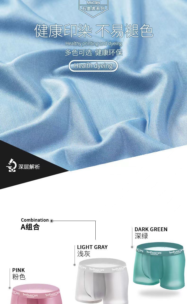 캣맨 그래핀 항균 아이스 실크 속옷 원활한 남성 유행 복서 속옷 여름 얇은 복서 반바지