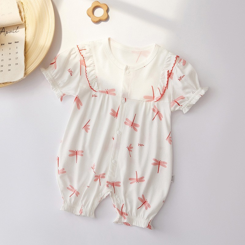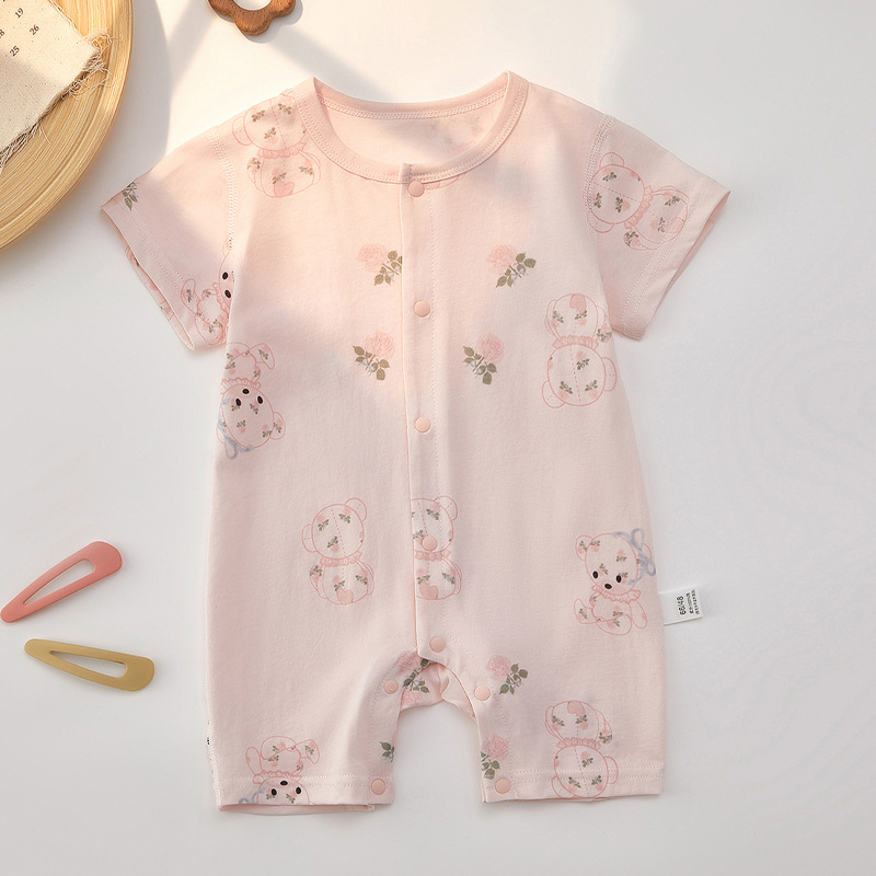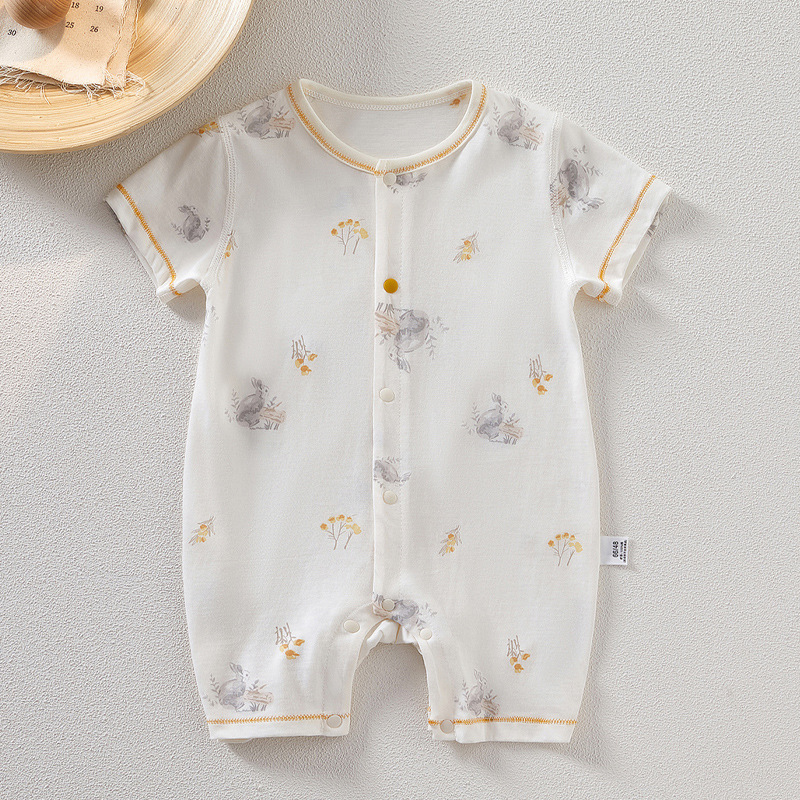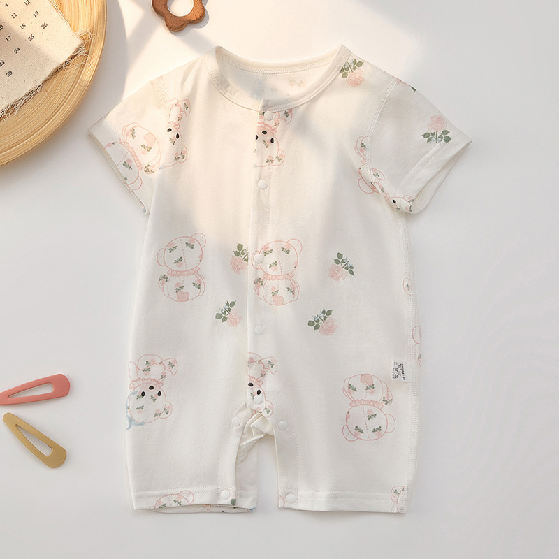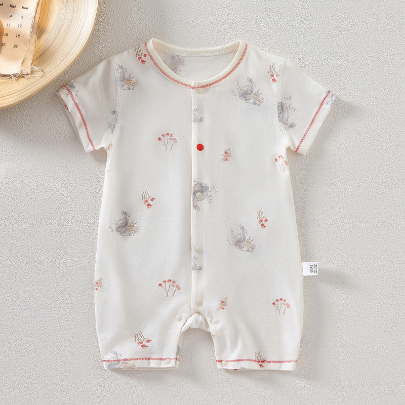 아기 점프 슈트 여름 얇은 유아 순수 코튼 남성과 여성의 아기 반팔 장난 꾸러기 신생아 옷스토어 가기
