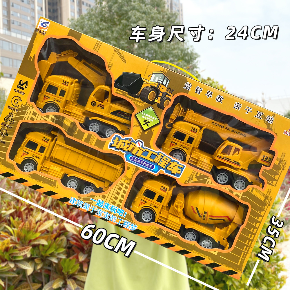 • [큰 기프트 박스] 대형 관성 컬러 엔지니어링 차량 4 팩