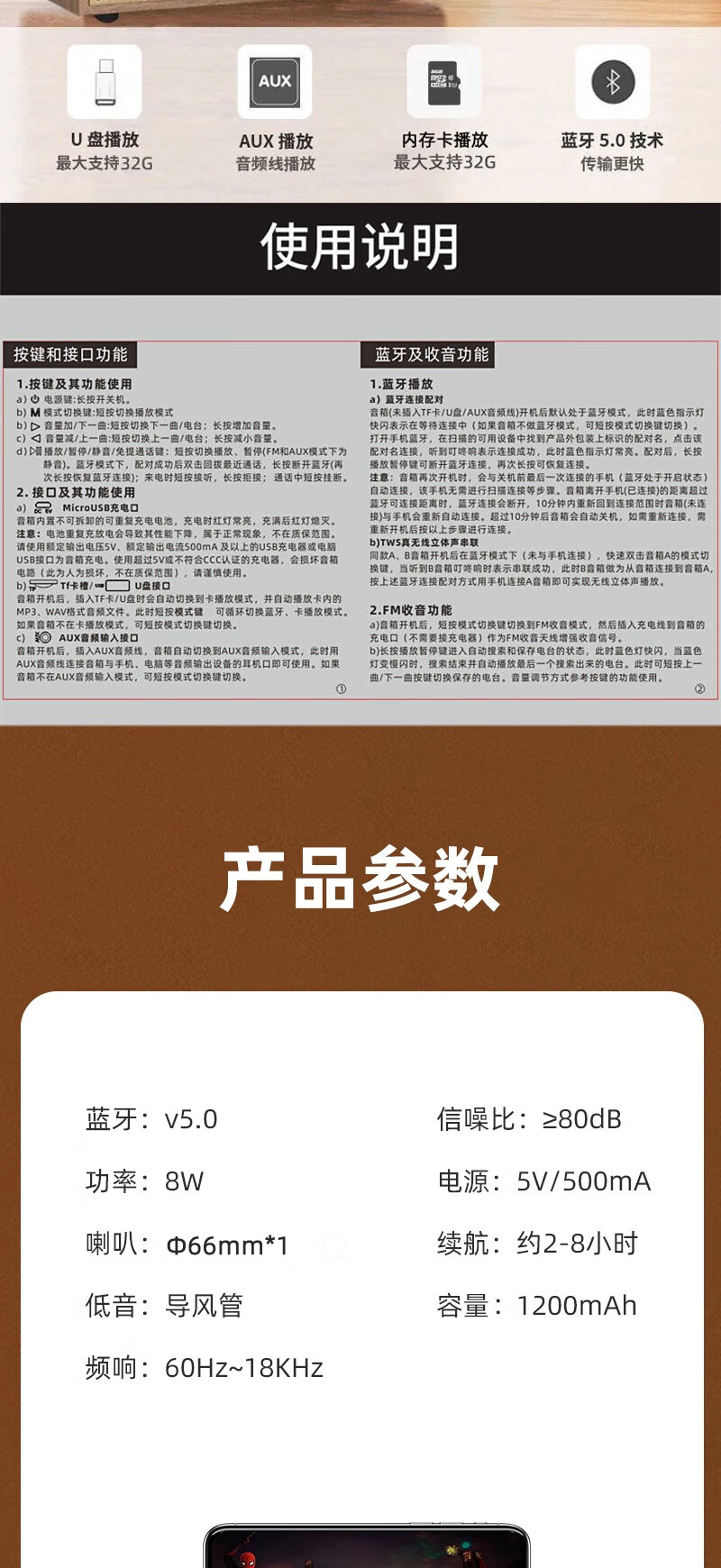 블루투스 스피커 나무 레트로 하이 엔드 홈 미니 무선 높은 볼륨 서브 우퍼 휴대용 데스크탑 작은 오디오스토어 가기
