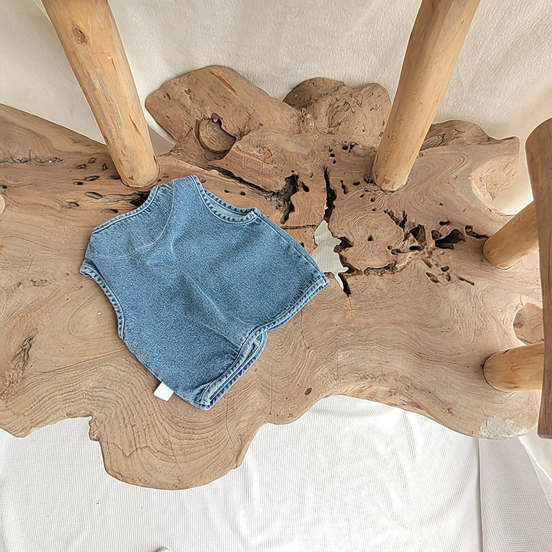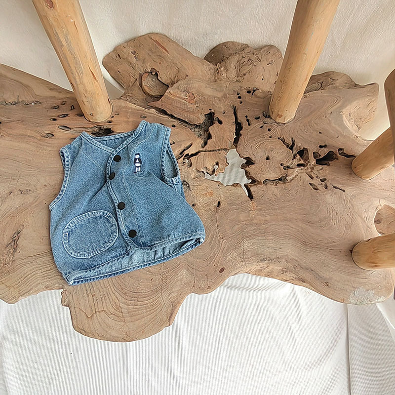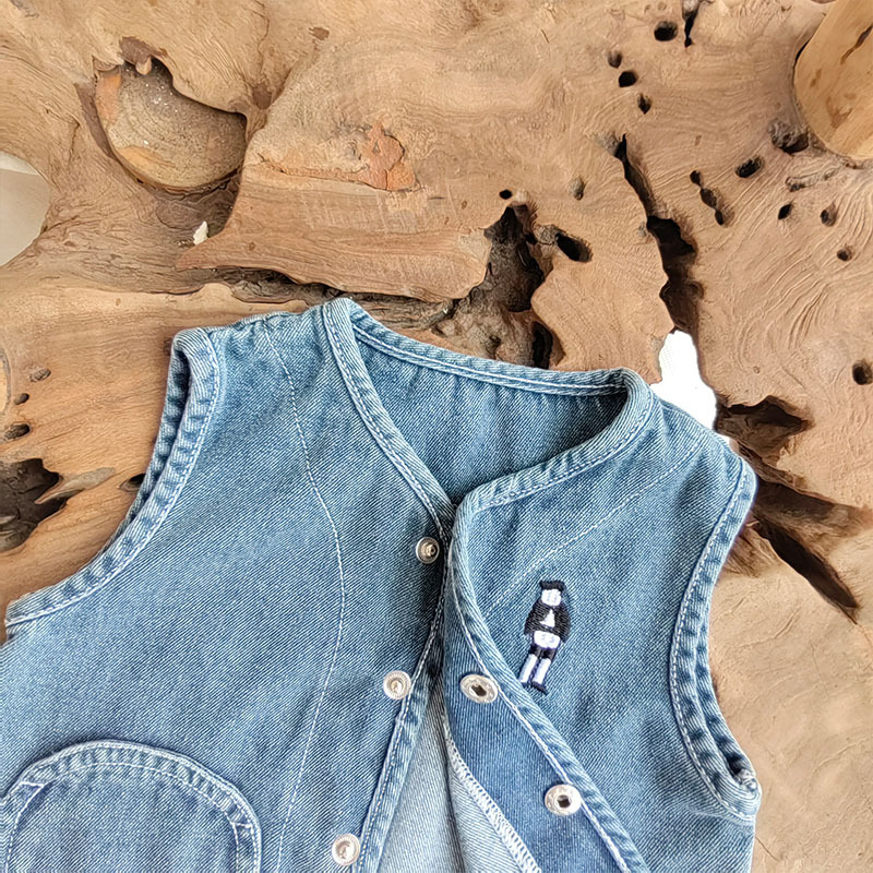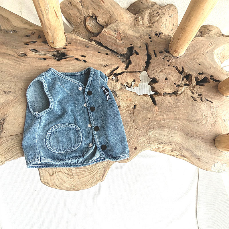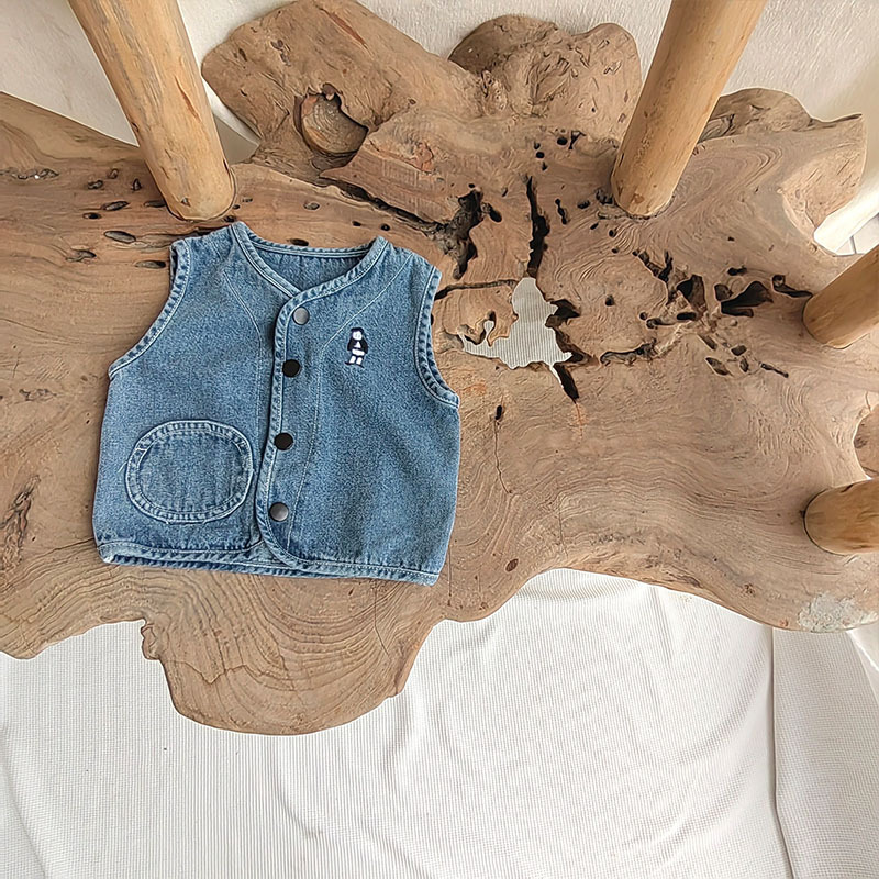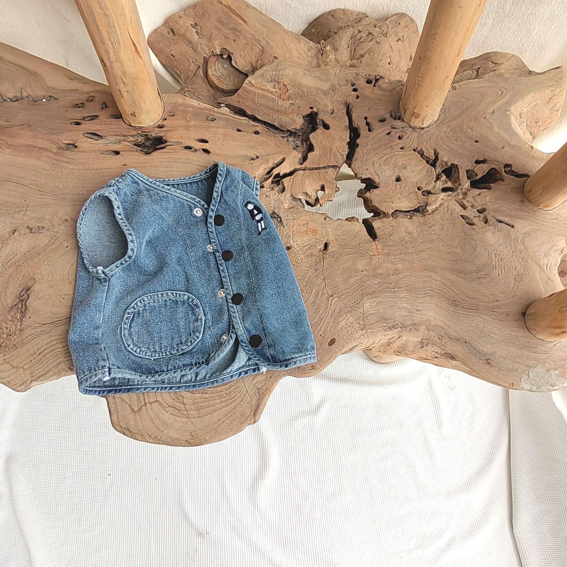한국 스타일 봄과 여름 만화 작은 그림 데님 조끼 아기 유행 캐주얼 복장 소년과 소녀를위한 아동복
